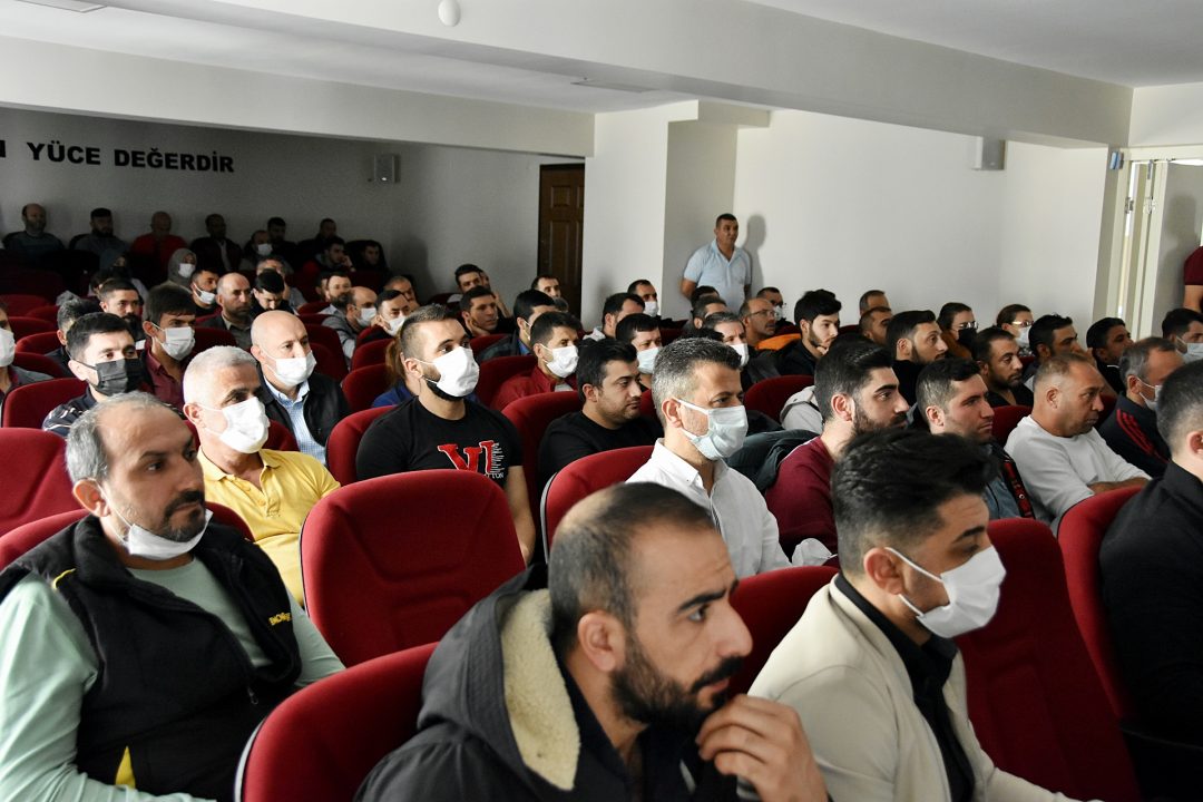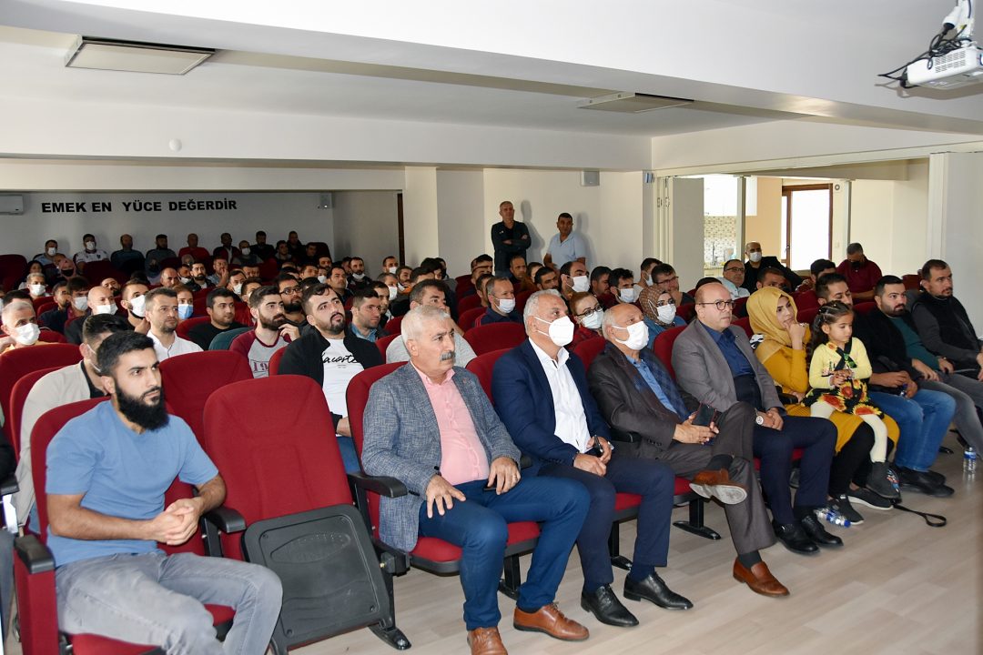 Genel Başkanımız Alaaddin Sarı daha sonra sendikamızın üyeler arasındaki dayanışmacı politikalarından ve üyelerimizin çocuklarına yönelik olarak gündeme getirilen etüt merkezi ile gençlik kampından söz etti. İzmir Bölgesini ve Rapro işçilerine bu hizmetleri sunmak için programlı bir çalışma içinde olduklarını belirtti.