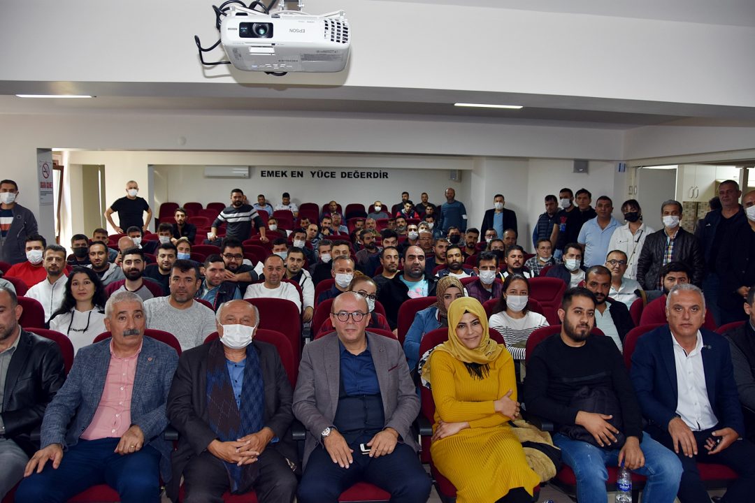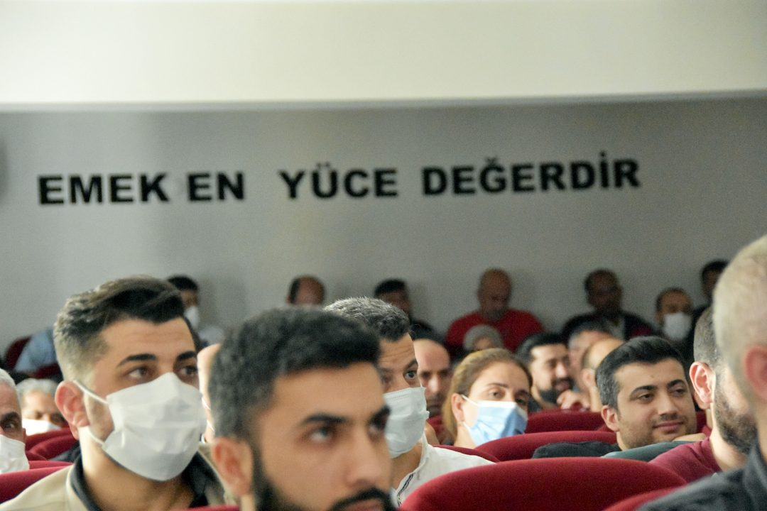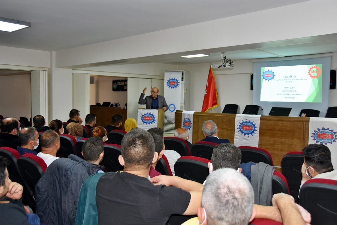 İzmir Kemalpaşa ve Turgutlu’da iki işyerinde faaliyet gösteren ve sendikamızın çoğunluğu sağlayarak yetki tespit başvurusunda bulunduğu Rapro (GATES) işçileri ile 7 Kasım 2021 tarihinde İzmir’de toplantı yapıldı. Yaklaşık 200 kişinin katıldığı bilgilendirme toplantısı konfederasyonumuz DİSK’e bağlı Birleşik Metal-İş Sendikasının İzmir şube binasının Kemal Türkler Eğitim ve Toplantı salonunda gerçekleştirildi.