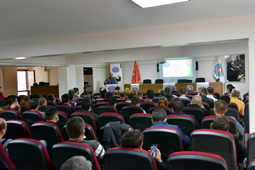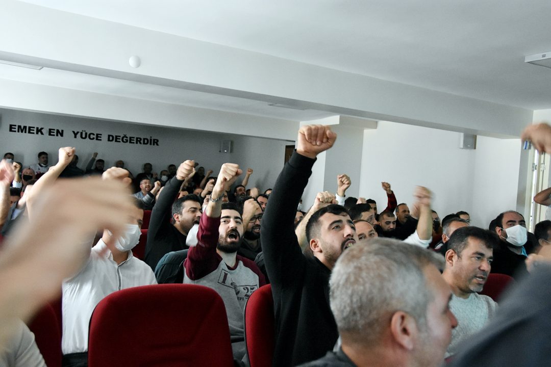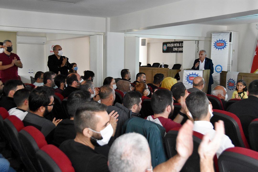 Zaman zaman slogan ve alkışlarla sürdürülen toplantı İzmir Şube Başkanı Yusuf Ziya Sarı’nın sendikal mücadelenin güçlendirilmesi için yaptığı değerlendirme ve uyarılar ile sona erdi.