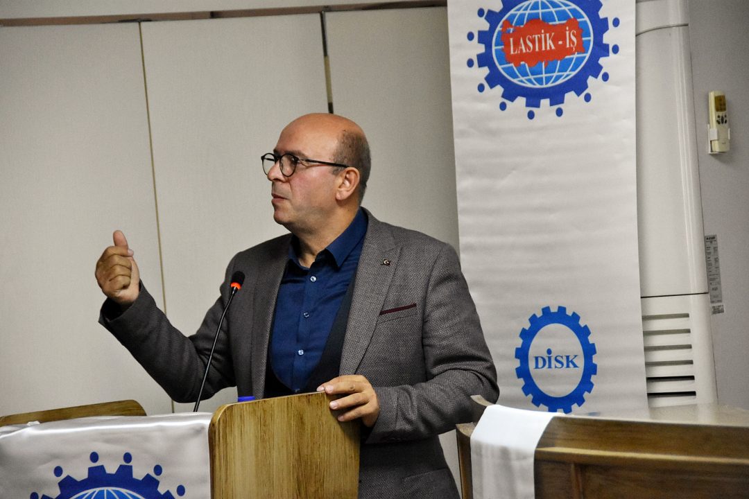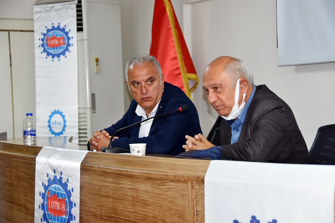 Konuşmasına Rapro işçilerini gösterdikleri sendikal mücadeleden dolayı kutlayarak başlayan Genel Başkanımız Alaaddin Sarı, Türkiye ve dünyadaki güncel durumu değerlendirerek ve örgütlenme konusunda dikkate alınması gereken noktalara değinerek konuşmasını sürdürdü. Genel Başkanımız Sarı; ‘’ Dünyamız tarihsel bir dönemden geçiyor. İşçilerin iş güvencelerini, gelirlerini ve yaşamlarını tehlikeye atan bir dizi olayın gerçekleştiğini görüyoruz. Ama haklarımızı ve toplumsal konumumuzu korumak için adeta tarih bir kez daha tekerrür ediyor. Bir araya gelip dayanışma içine girmekten ve örgütlü bir mücadele yürütmekten başka hiçbir çaremiz yoktur. İşverenlerin haksız saldırılarından, ücretsiz izinlerden, haksız işten çıkarmalardan ve gelir kayıplarından kurtulabilmemiz için sendika üyesi olmalı ve toplu iş sözleşmesine ulaşmak için mücadele etmeliyiz.