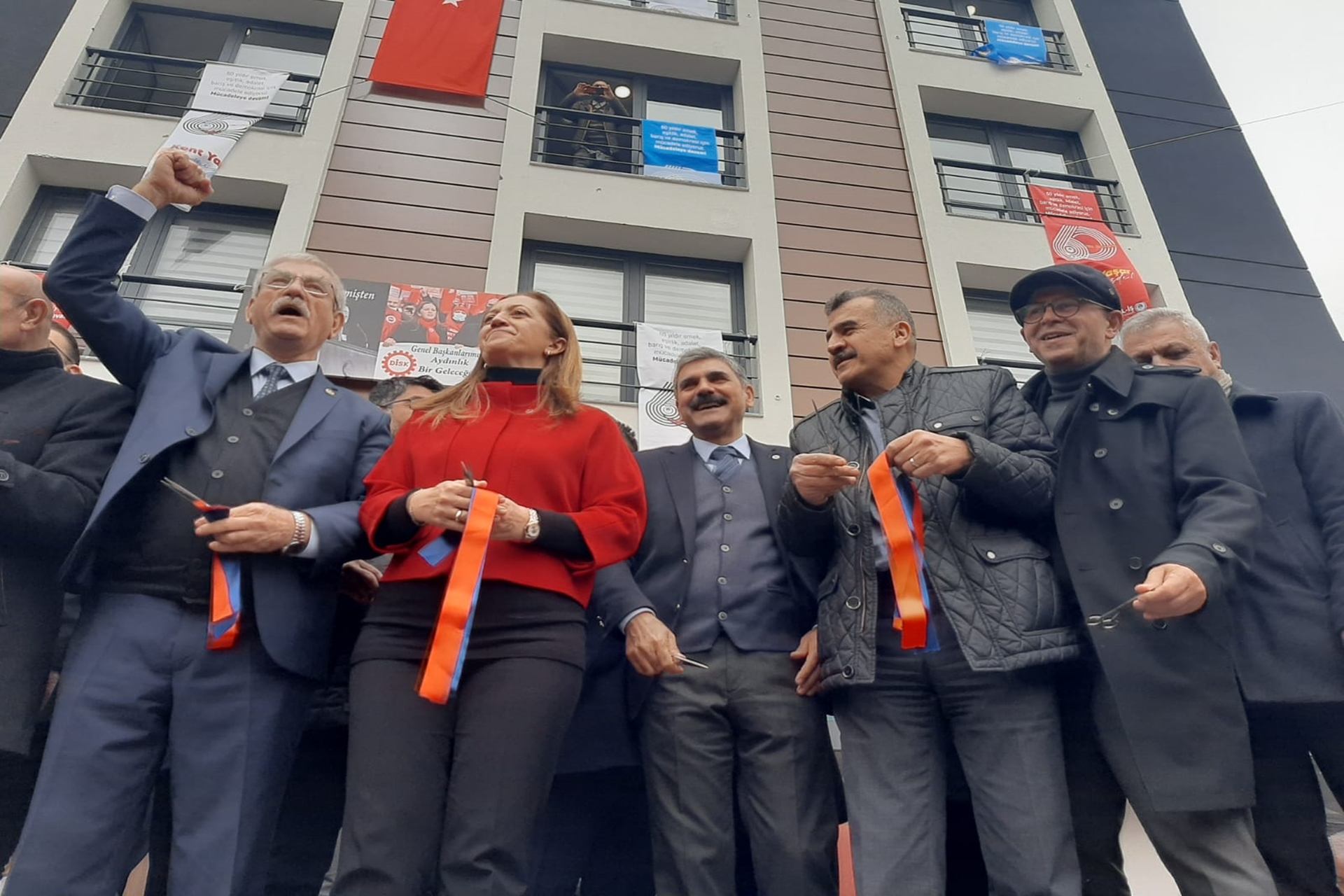 Açılış törenine; DİSK Genel Başkanı Arzu Çerkezoğlu, DİSK Genel Başkan Yardımcısı ve sendikamızın Genel Başkanı Alaaddin Sarı, DİSK Genel Başkan Yardımcısı ve Genel-İş Sendikası Genel Başkanı Remzi Çalışkan ve DİSK Yönetim Kurulu Üyeleri, İzmir Büyükşehir Belediye Başkanı Tunç Soyer, DİSK Ege Bölge Temsilcisi Memiş Sarı, CHP İzmir Milletvekilleri Kani Beko ve Atilla Sertel, Konak Belediye Başkanı Abdül Batur, Genel-İş Sendikası Şubelerinin Başkan ve Yöneticileri, DİSK ve Genel-İş üyesi işçiler ile İzmir emek ve meslek örgütü yöneticileri ve siyasi parti temsilcileri katıldı. Sendikamız Lastik-İş’in İzmir Şube Yönetimi de açılışta bulundu.