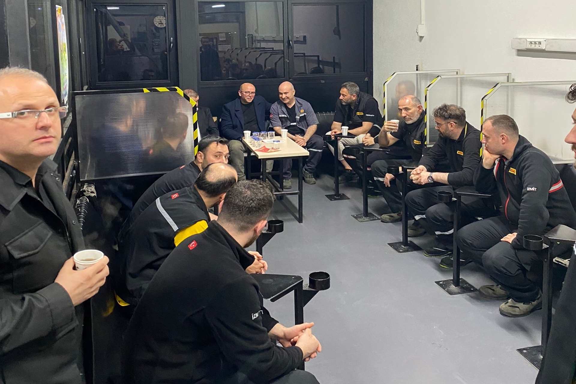 Pirelli işyerinde çalışan üyelerimiz Genel Başkanımızı, Genel Merkez ve Kocaeli Şube yönetimini meşaleler eşliğinde coşku ile karşıladı. Gerçekleştirilen ziyarette Genel Başkanımız Alaaddin Sarı, ‘’Bizi bu şekilde karşıladığınız için hem Yönetim Kurulumuz hem Şube hem de temsilcilerimiz adına hepinize teşekkür ediyorum, sağ olun.’’ dedi. Yemekhanede yapılan sahur sonrası gündeme dair konular konuşuldu, fabrika gezildi. Üyelerimiz ile çay mahallinde edilen sohbetin ardından ziyaret sona erdi.