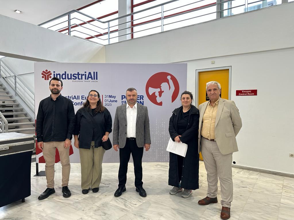 Sendikamızın üyesi olduğu uluslararası üst kuruluş IndustriAll Avrupa Sendikası’nın ilk kez düzenlenen ara dönem konferansı 1-2 Haziran 2023 tarihlerinde Yunanistan’ın Selanik şehrinde gerçekleştirildi. Avrupa’da 34 ülkede faaliyet gösteren 119 sanayi sendikasından yaklaşık 450 sendika yöneticisi ve uzmanının yer aldığı konferansa sendikamızın Genel Sekreteri İhsan Malkoç, Mali İşler Dairesi Başkanı Nejdet Ulusoy, Mali İşler Dairesi Şefi Seher Aydın Tekin, Toplu Sözleşme Dairesi Uzmanı Ece Göktürk ve Uluslararası İlişkiler Dairesi Uzmanı Cemal Hoşver katıldı.