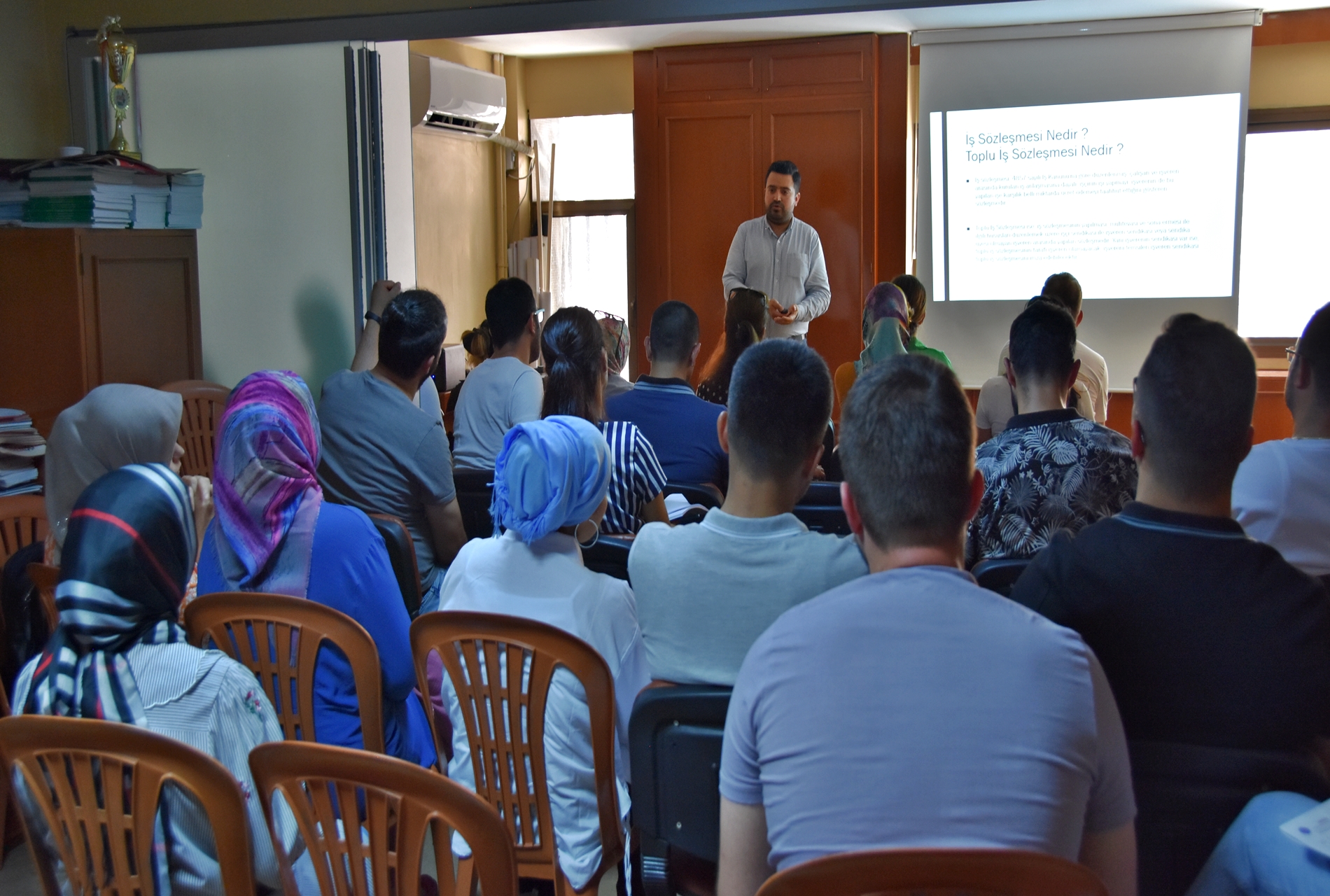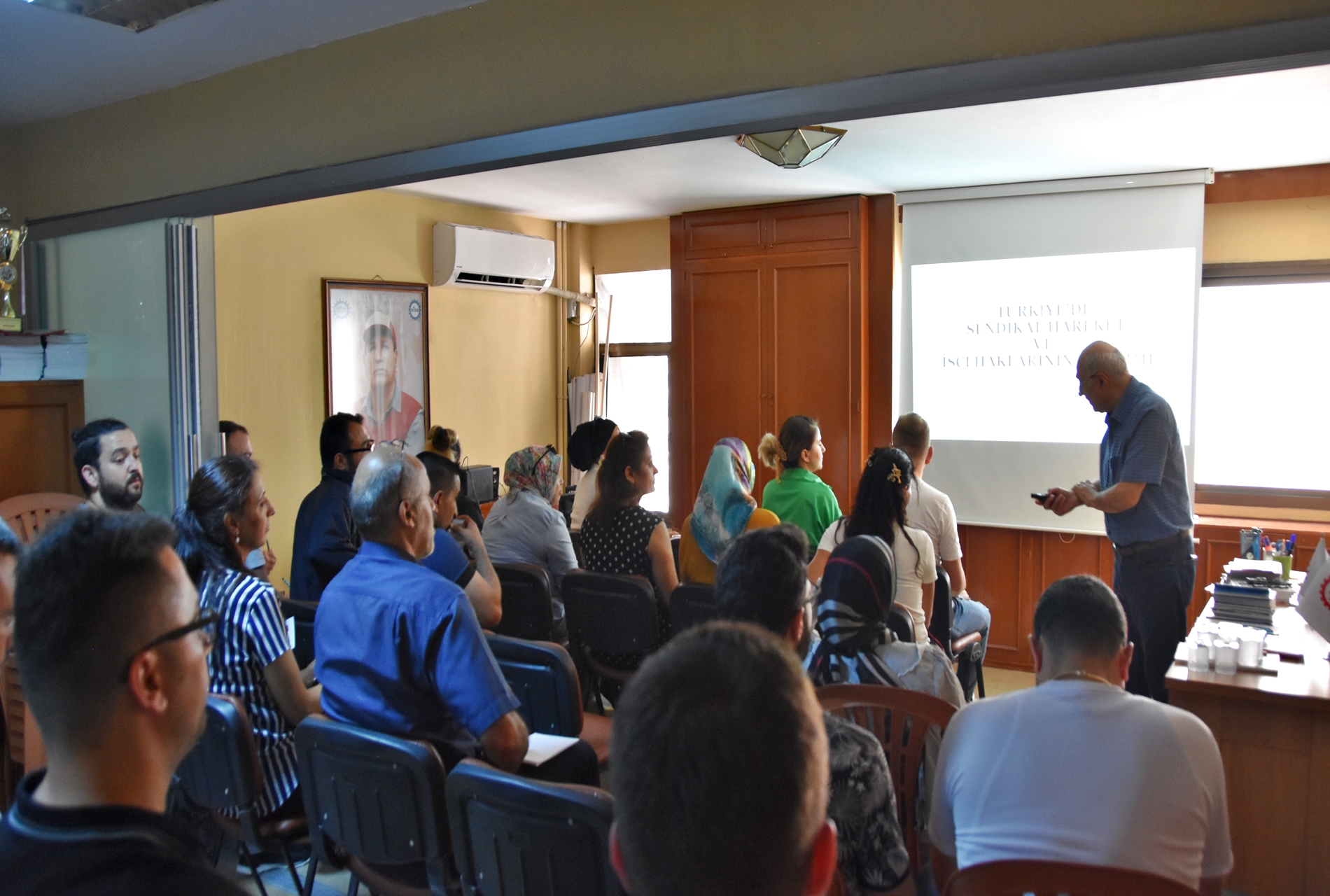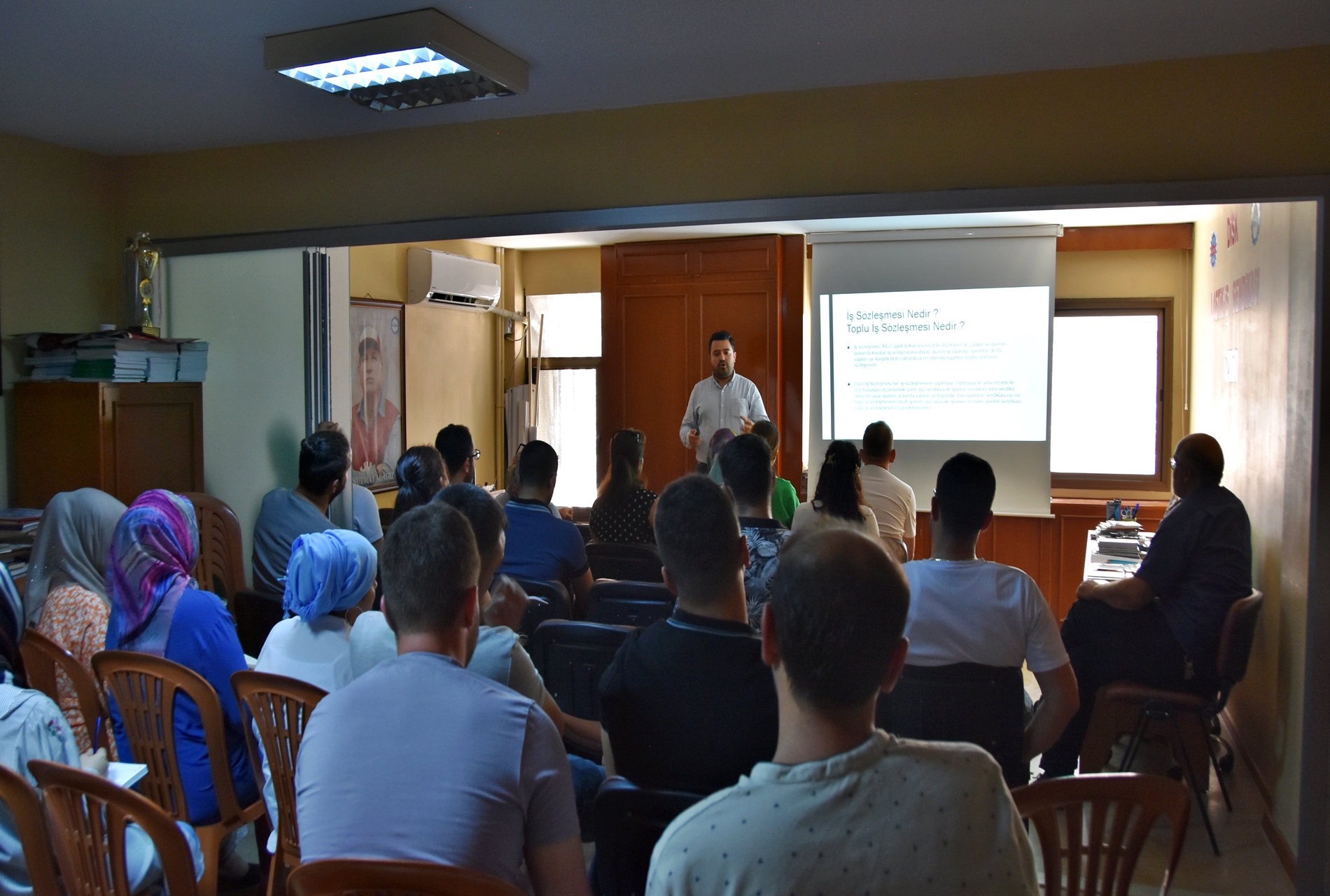 Sendikamızın Toplu Sözleşme ve Eğitim Dairesi Müdürü Üzeyir Ataman ‘‘Türkiye’de Sendikal Hareketin ve İşçi Haklarının Gelişme Süreci’’ ve ‘’Gelir Dağılımı, Enflasyon ve Ücretler’’ adlı sunumlarını; Toplu Sözleşme Dairesi Uzmanımız Ece Göktürk ‘‘Lastik-İş’li Olmak: İşyeri Sendika Temsilciliği’’ konusunu, Av. Tolga Demirel ise ‘’Toplu Pazarlık Süreci’’ni işledi. Eğitim yapılan örgütlenme pratiği ve anketin ardından sınav uygulaması ile son buldu.