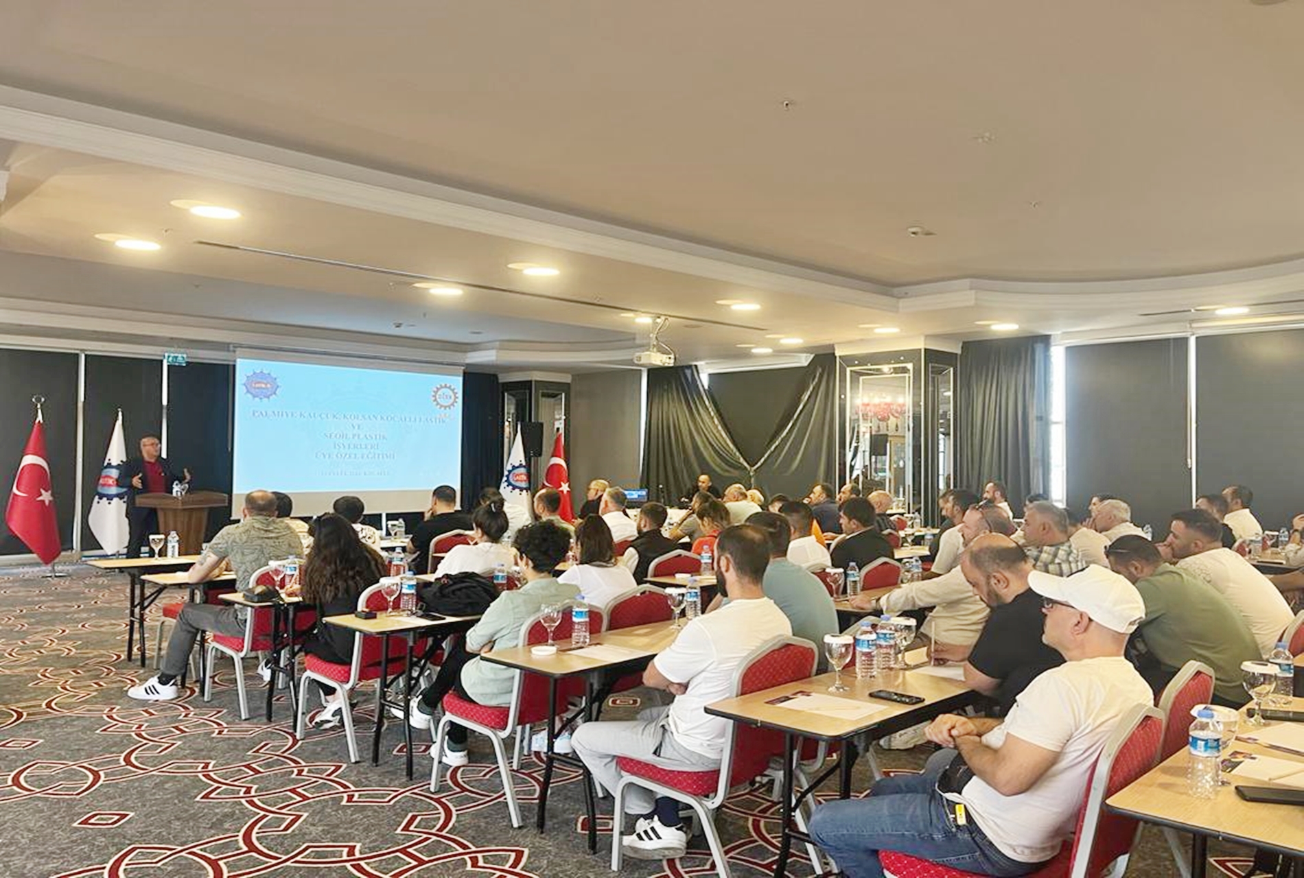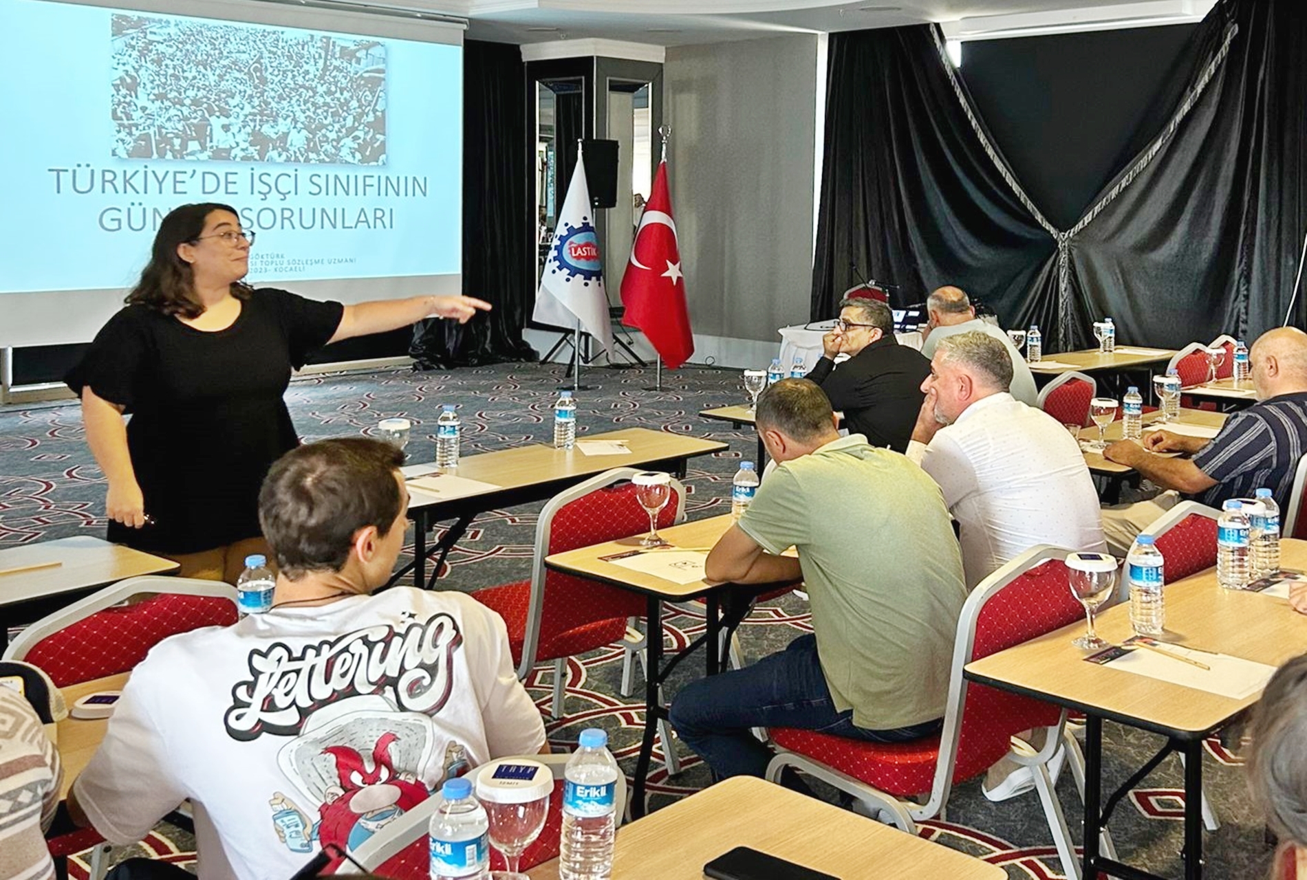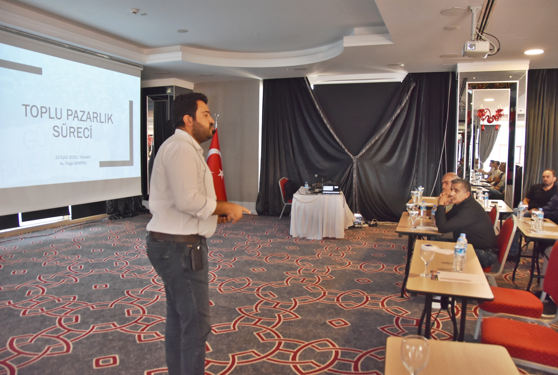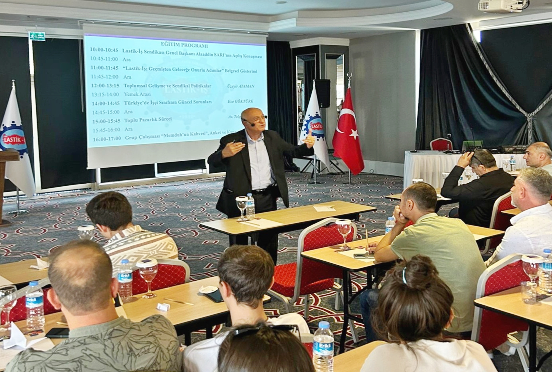Sendikamızın eğitim çalışmaları kapsamında 23 Eylül 2023 tarihinde Seoil Plastik, Kolsan Kocaeli Lastik ve Palmiye Kauçuk işyerlerinde Üye Özel Eğitimi gerçekleştirdik. TRYP By Wyndham’da gerçekleşen eğitime; Sendikamızın Genel Başkanı Alaaddin Sarı, Eğitim Basın Yayın Dairesi Başkanı Salih Gür, Mali İşler Dairesi Başkanı Nejdet Ulusoy, Örgütlenme Dairesi Başkanı Alperen Şakacı, Toplu Sözleşme ve Eğitim Dairesi Müdürü Üzeyir Ataman, Toplu İş Sözleşmesi Dairesi Uzmanı Ece Göktürk, sendikamızın avukatı Tolga Demirel, Lastik-İş Sendikası Kocaeli Şube yöneticileri ve işyerlerinden üyelerimiz katıldı. Eğitim Genel Başkanımız Alaaddin Sarı’nın konuşması ile başladı.
