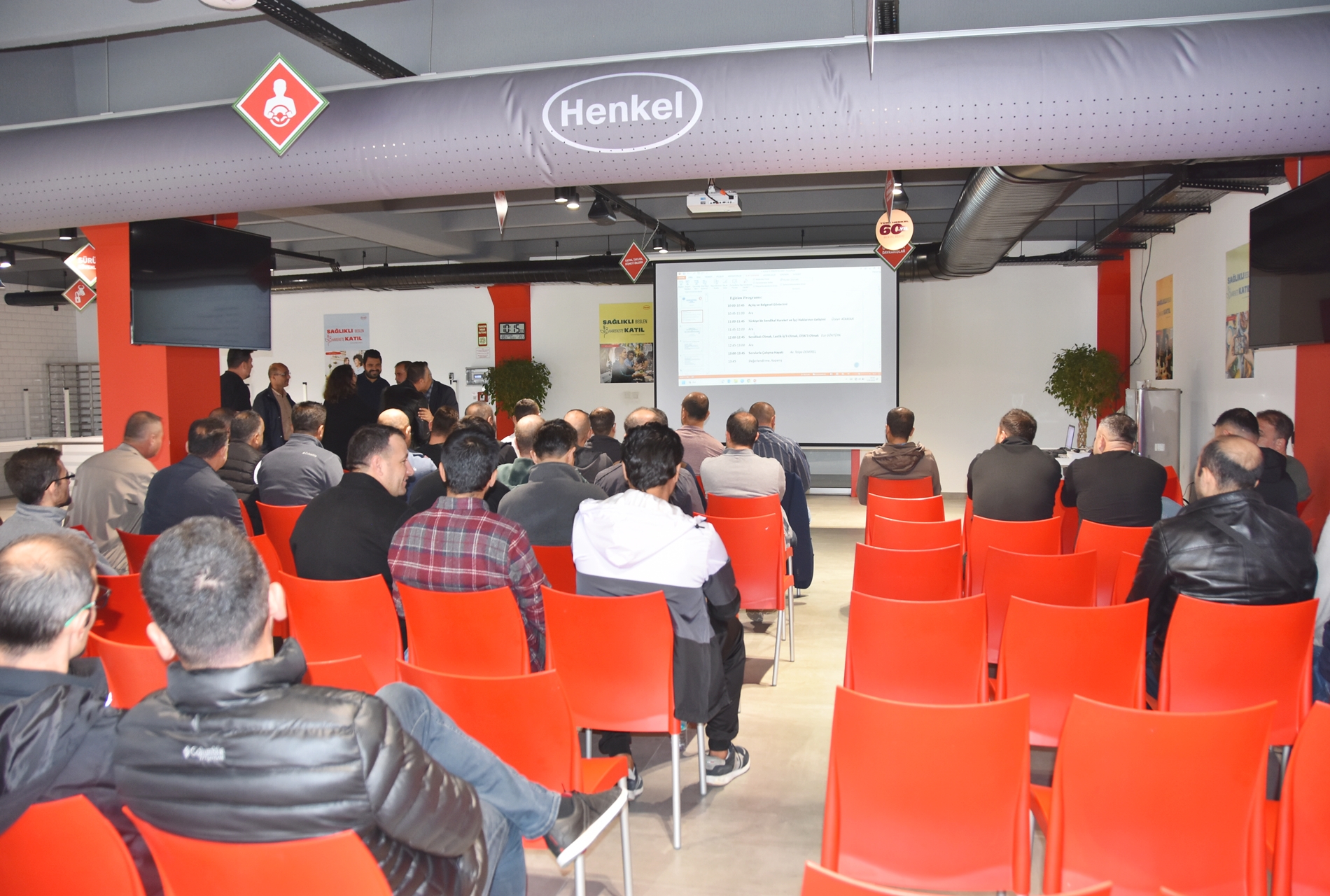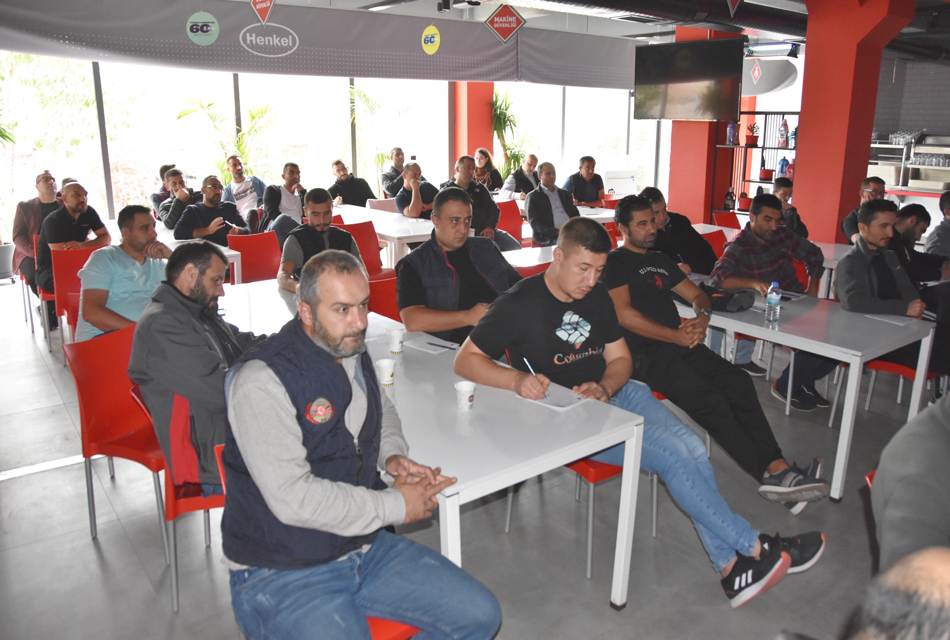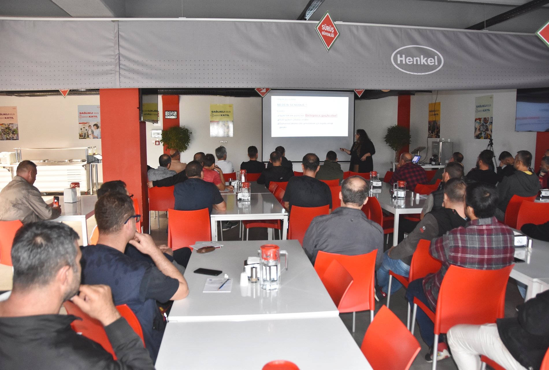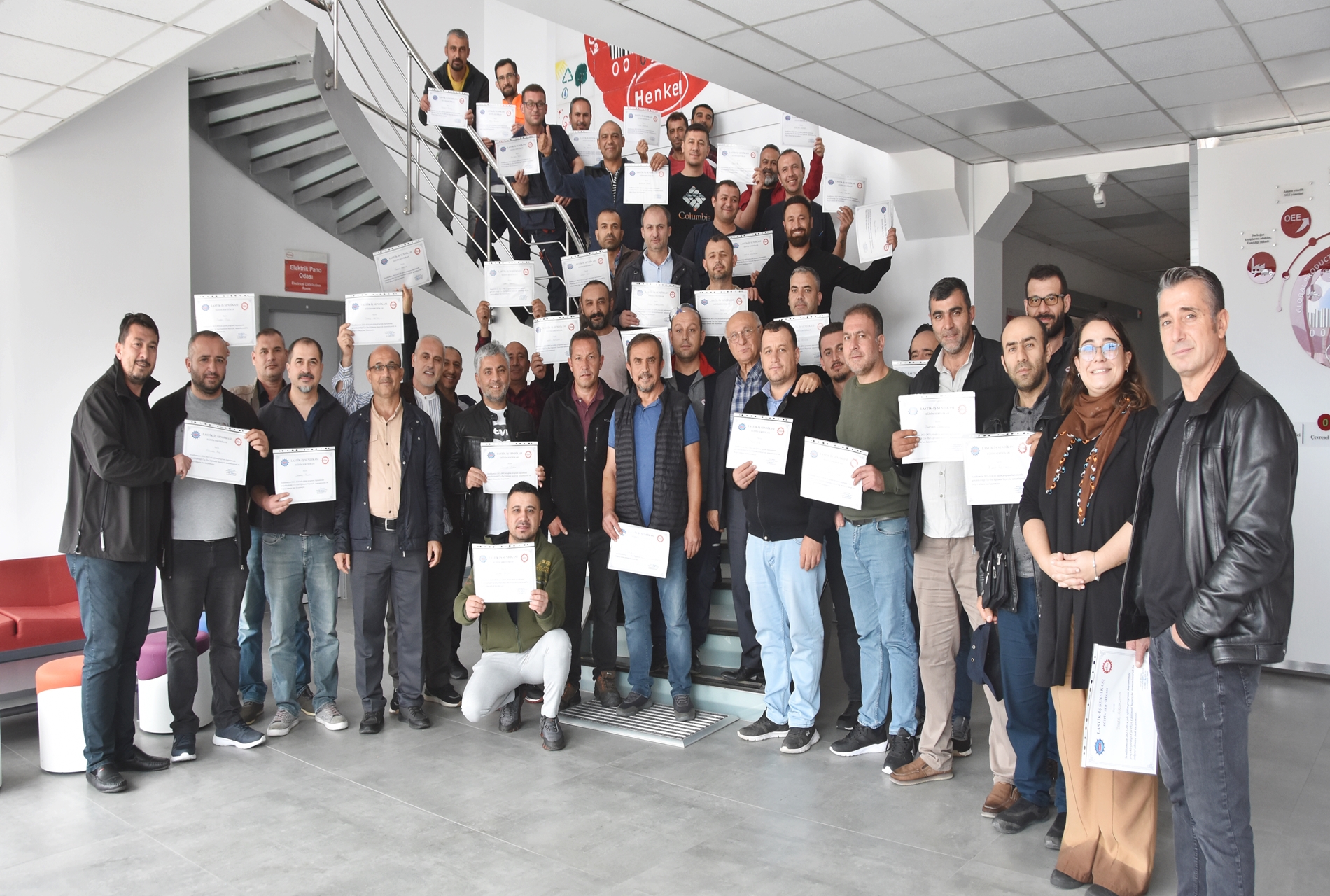 Sendikamızın 2023-2024 yılı eğitim çalışmaları kapsamında 1 Ekim 2023 Pazar günü Ankara’da kurulu Türk Henkel Kimya San. ve Tic. A.Ş.’de çalışan üyelerimizle Üye Özel Eğitimi gerçekleştirdik. İşyerinde gerçekleşen eğitime; Toplu Sözleşme ve Eğitim Dairesi Müdürü Üzeyir Ataman, Toplu İş Sözleşmesi Dairesi Uzmanı Ece Göktürk, Eğitim Basın Yayın Dairesi Uzmanı Eda Aligöz, sendikamızın avukatı Tolga Demirel, Lastik-İş Sendikası Gebze Şube Başkanı Özay Bektaş, Şube İdari Sekreteri Şener Uçar, işyerlerinden temsilci ve üyelerimiz katıldı. Eğitim ‘’Lastik-İş Geçmişten Geleceğe Onurlu Adımlar’’ belgeselinin gösterimi ile başladı.