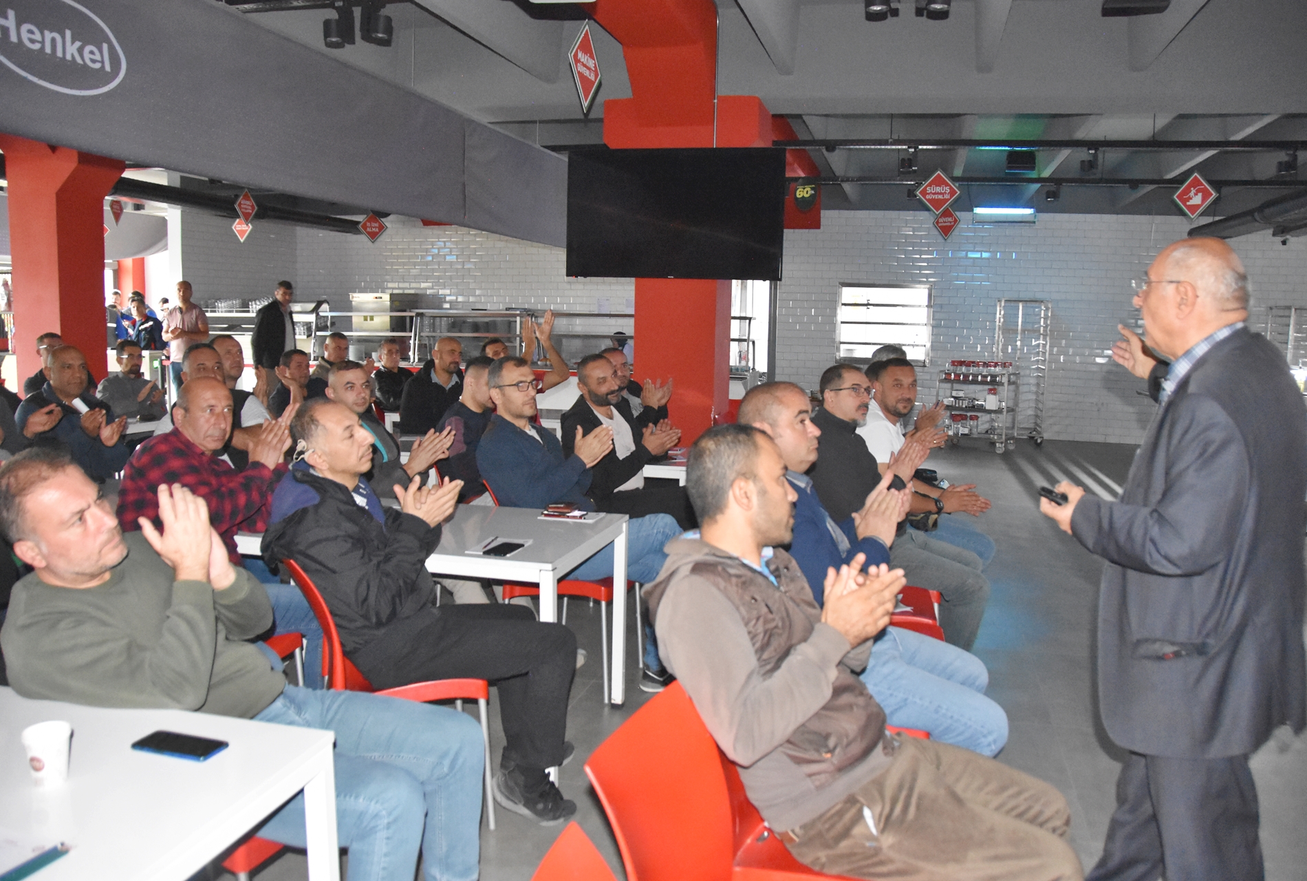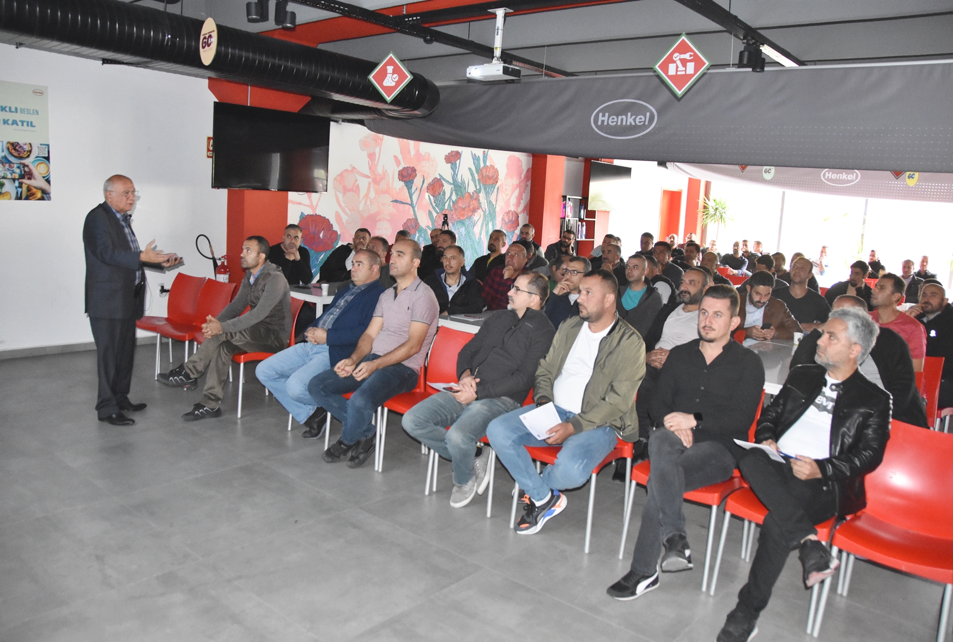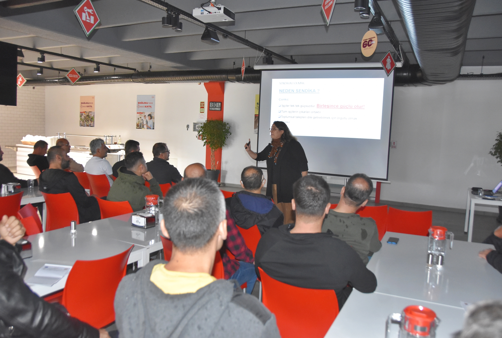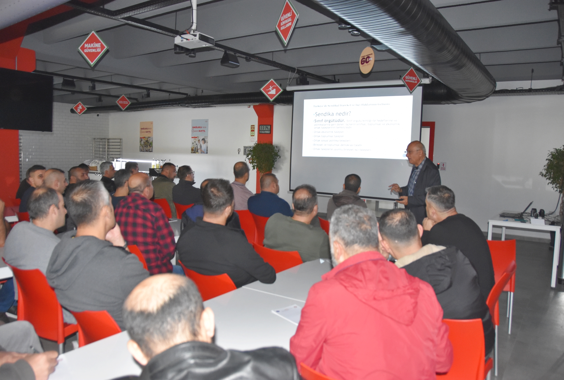 Sendikamızın 2023-2024 yılı eğitim çalışmaları kapsamında 1 Ekim 2023 Pazar günü Ankara’da kurulu Türk Henkel Kimya San. ve Tic. A.Ş.’de çalışan üyelerimizle Üye Özel Eğitimi gerçekleştirdik. İşyerinde gerçekleşen eğitime; Toplu Sözleşme ve Eğitim Dairesi Müdürü Üzeyir Ataman, Toplu İş Sözleşmesi Dairesi Uzmanı Ece Göktürk, Eğitim Basın Yayın Dairesi Uzmanı Eda Aligöz, sendikamızın avukatı Tolga Demirel, Lastik-İş Sendikası Gebze Şube Başkanı Özay Bektaş, Şube İdari Sekreteri Şener Uçar, işyerlerinden temsilci ve üyelerimiz katıldı. Eğitim ‘’Lastik-İş Geçmişten Geleceğe Onurlu Adımlar’’ belgeselinin gösterimi ile başladı.