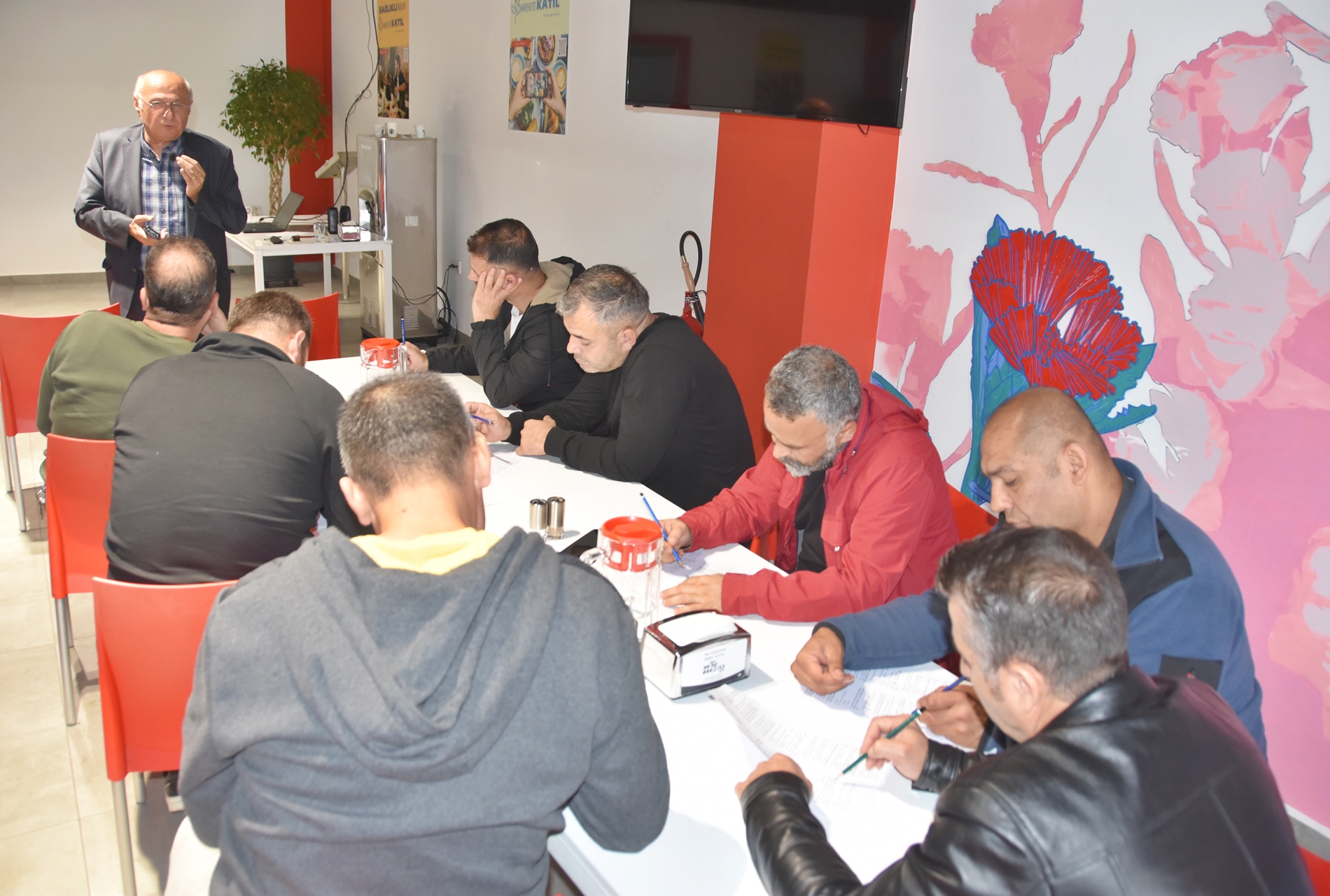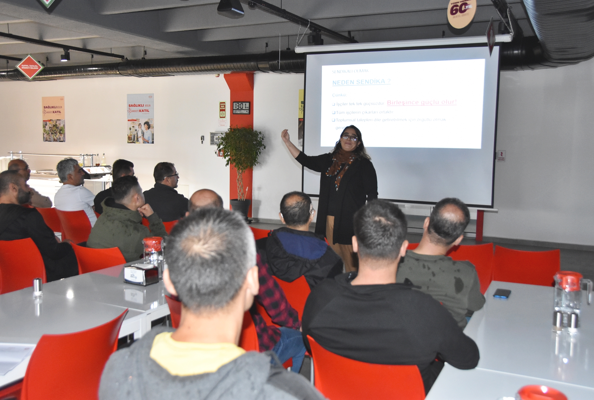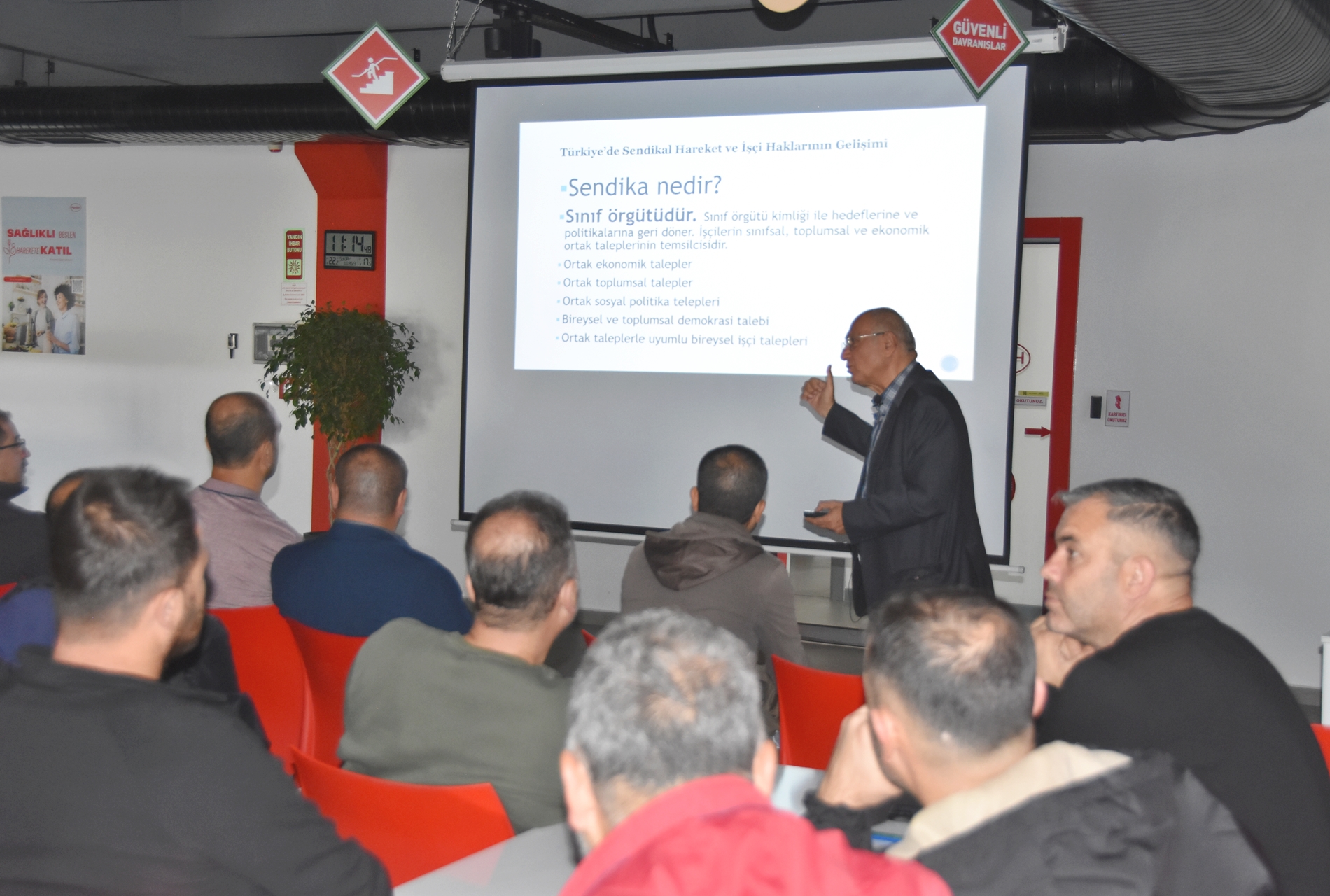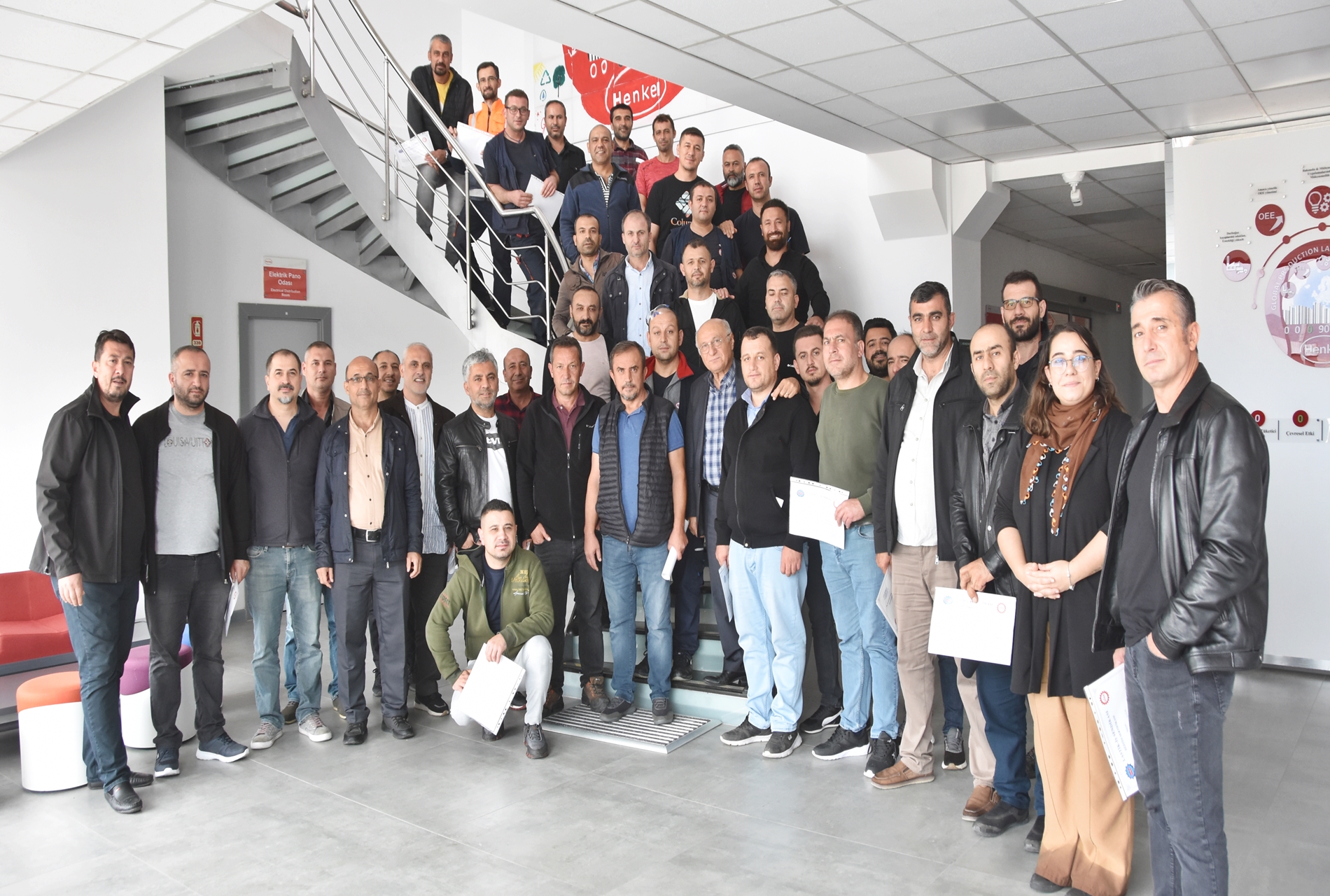 Sendikamızın 2023-2024 yılı eğitim çalışmaları kapsamında 1 Ekim 2023 Pazar günü Ankara’da kurulu Türk Henkel Kimya San. ve Tic. A.Ş.’de çalışan üyelerimizle Üye Özel Eğitimi gerçekleştirdik. İşyerinde gerçekleşen eğitime; Toplu Sözleşme ve Eğitim Dairesi Müdürü Üzeyir Ataman, Toplu İş Sözleşmesi Dairesi Uzmanı Ece Göktürk, Eğitim Basın Yayın Dairesi Uzmanı Eda Aligöz, sendikamızın avukatı Tolga Demirel, Lastik-İş Sendikası Gebze Şube Başkanı Özay Bektaş, Şube İdari Sekreteri Şener Uçar, işyerlerinden temsilci ve üyelerimiz katıldı. Eğitim ‘’Lastik-İş Geçmişten Geleceğe Onurlu Adımlar’’ belgeselinin gösterimi ile başladı.