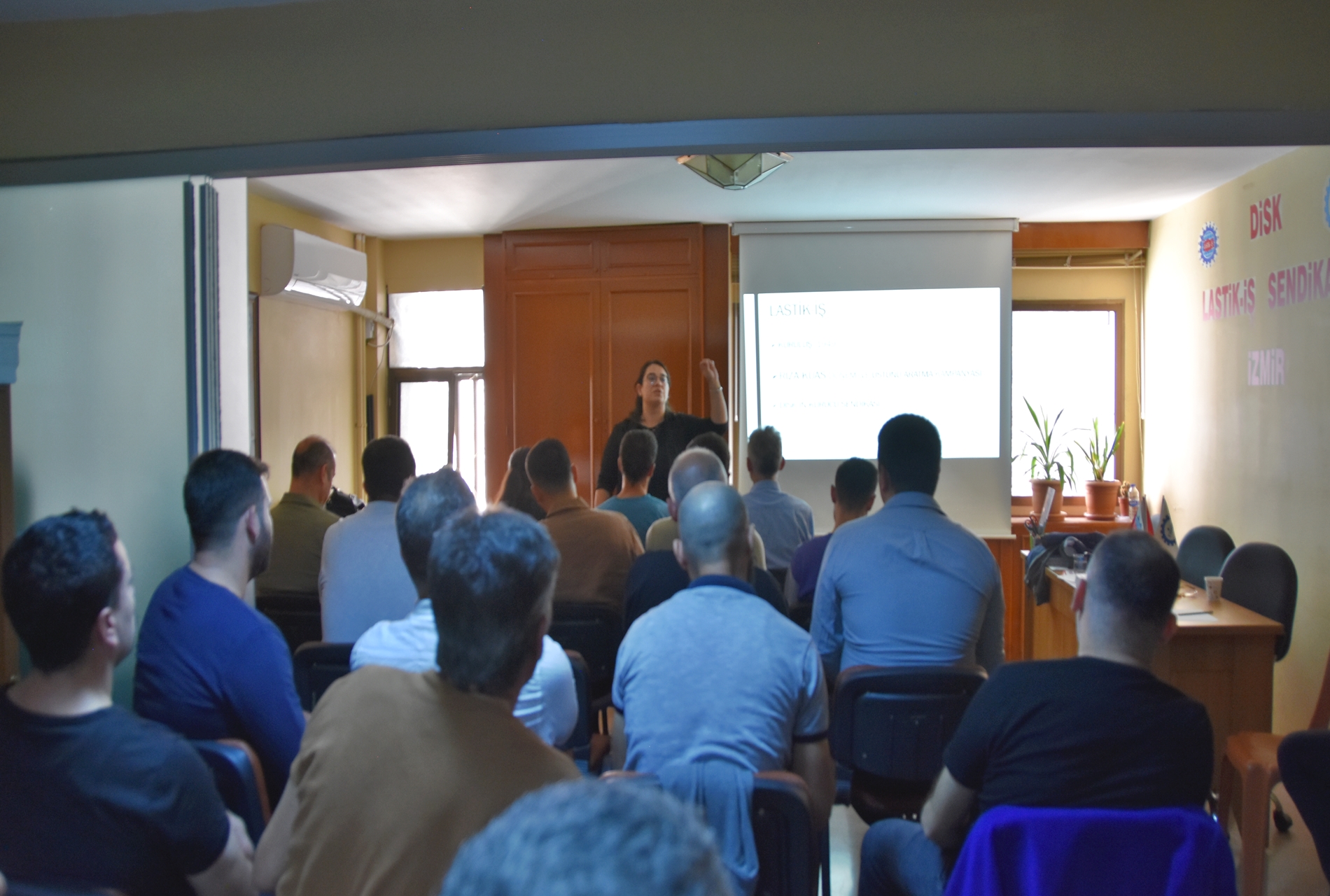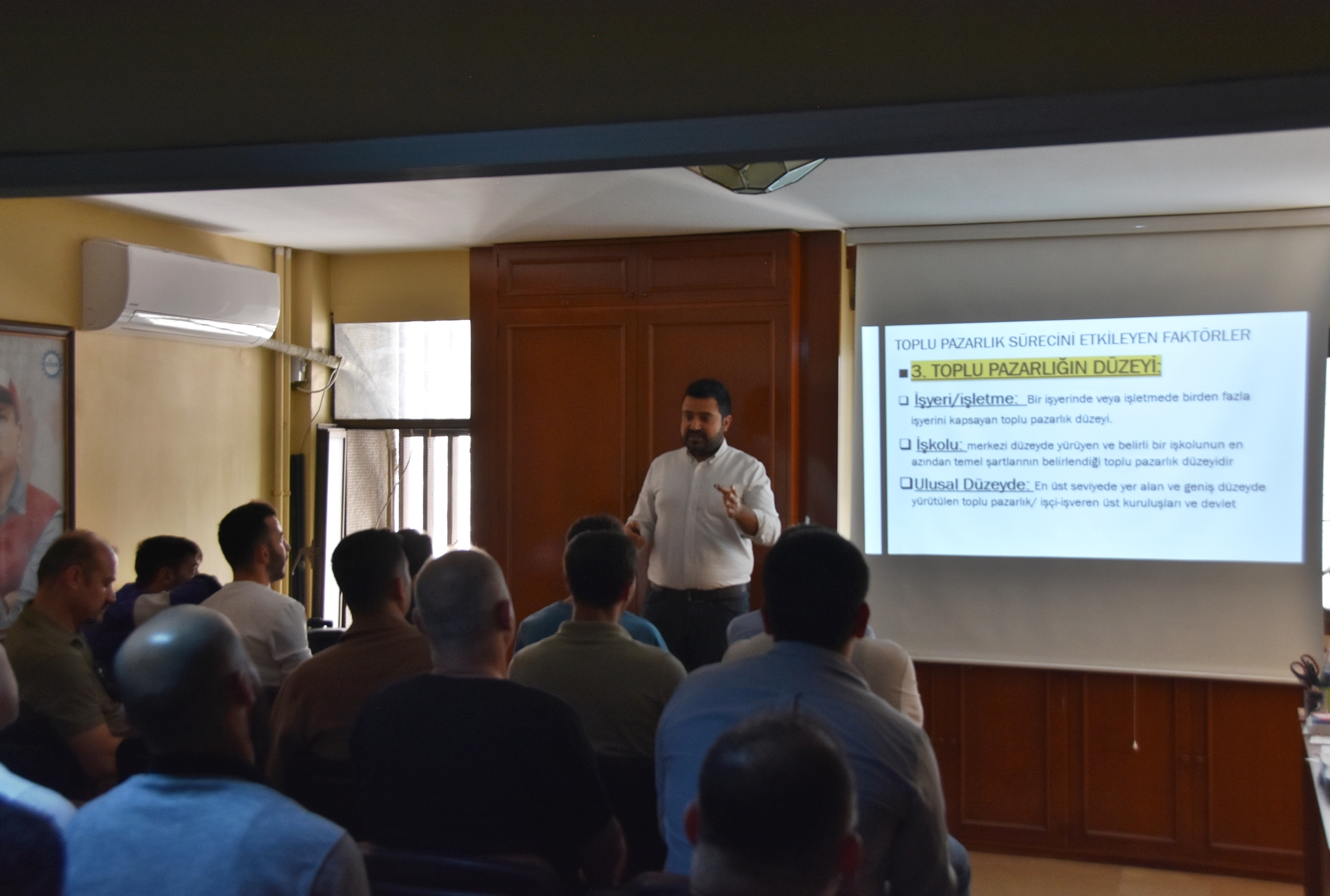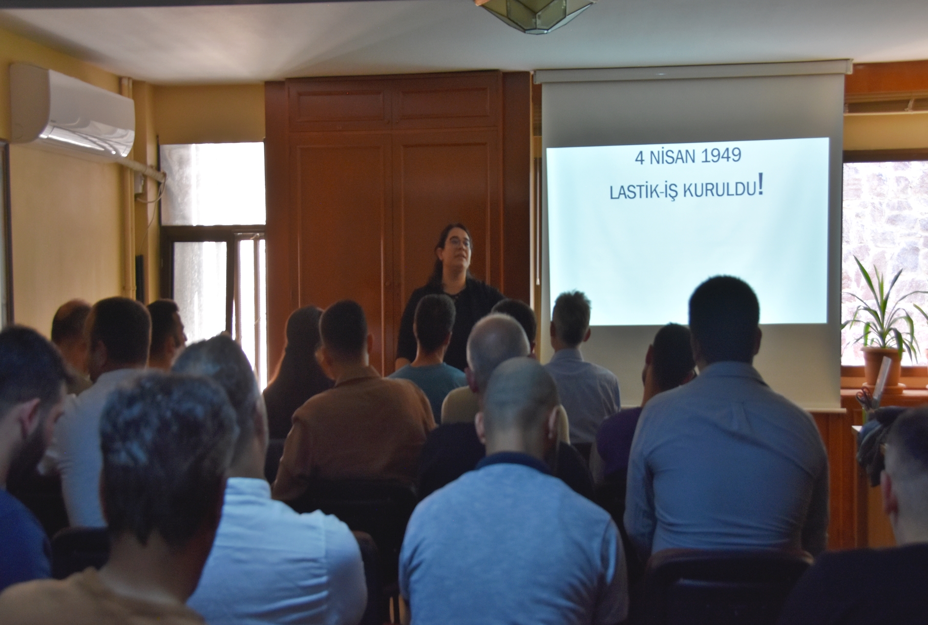 Sendikamızın Toplu Sözleşme ve Eğitim Dairesi Müdürü Üzeyir Ataman’ın ‘‘Türkiye’de Sendikal Hareket ve İşçi Haklarının Gelişimi’’ ve ‘’Enflasyon Ücret İlişkisi ve Ücret Politikaları’’ adlı sunumlarının ardından, Toplu Sözleşme Dairesi Uzmanımız Ece Göktürk ‘‘Lastik-İş’li Olmak’’ adlı sunumunu yaptı. Sendikamızın Avukatı Tolga Demirel’in ‘’Toplu Pazarlık Süreci’’ni işlemesinin ardından eğitim yapılan anket ve sınav uygulaması ile son buldu.