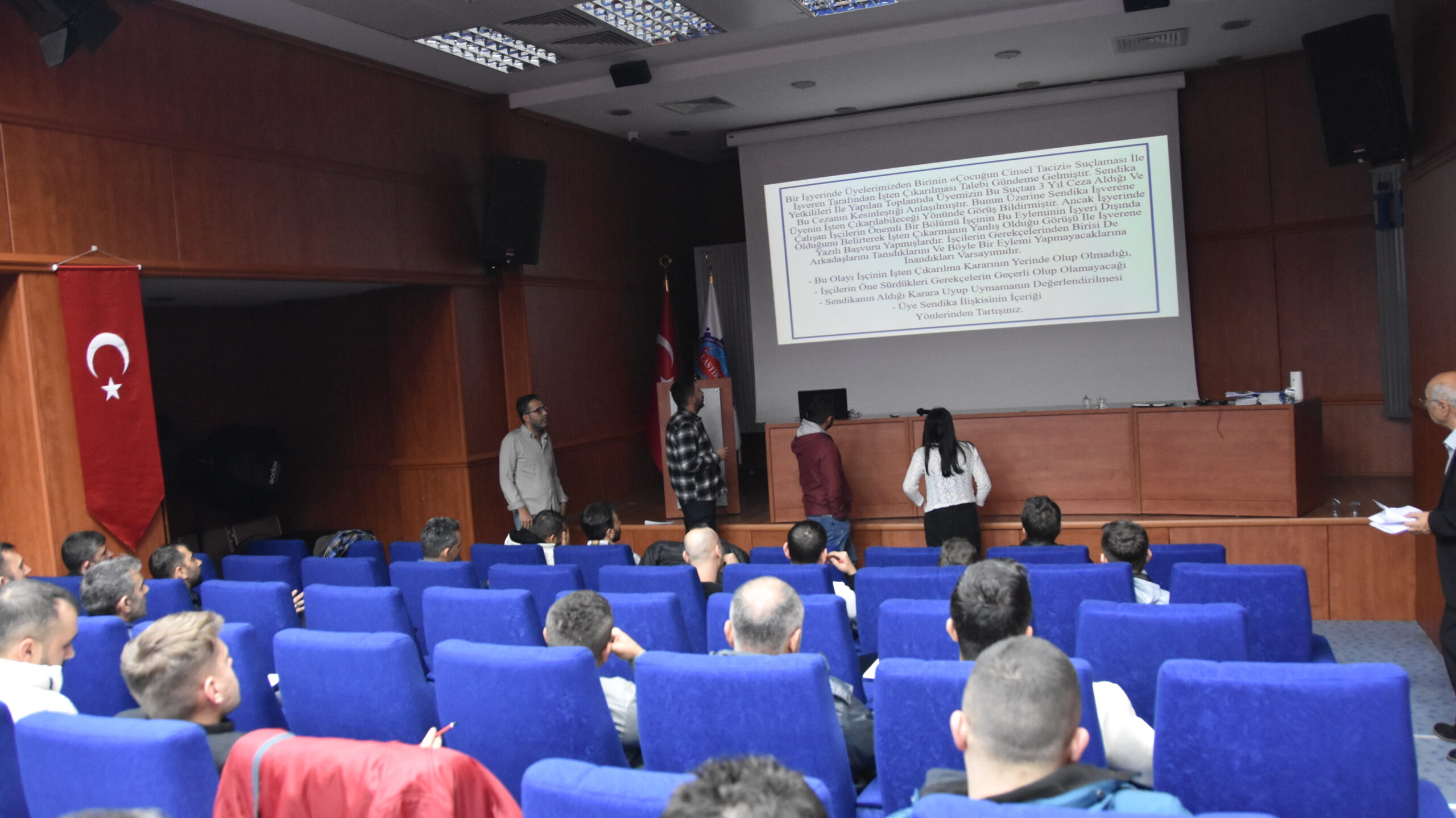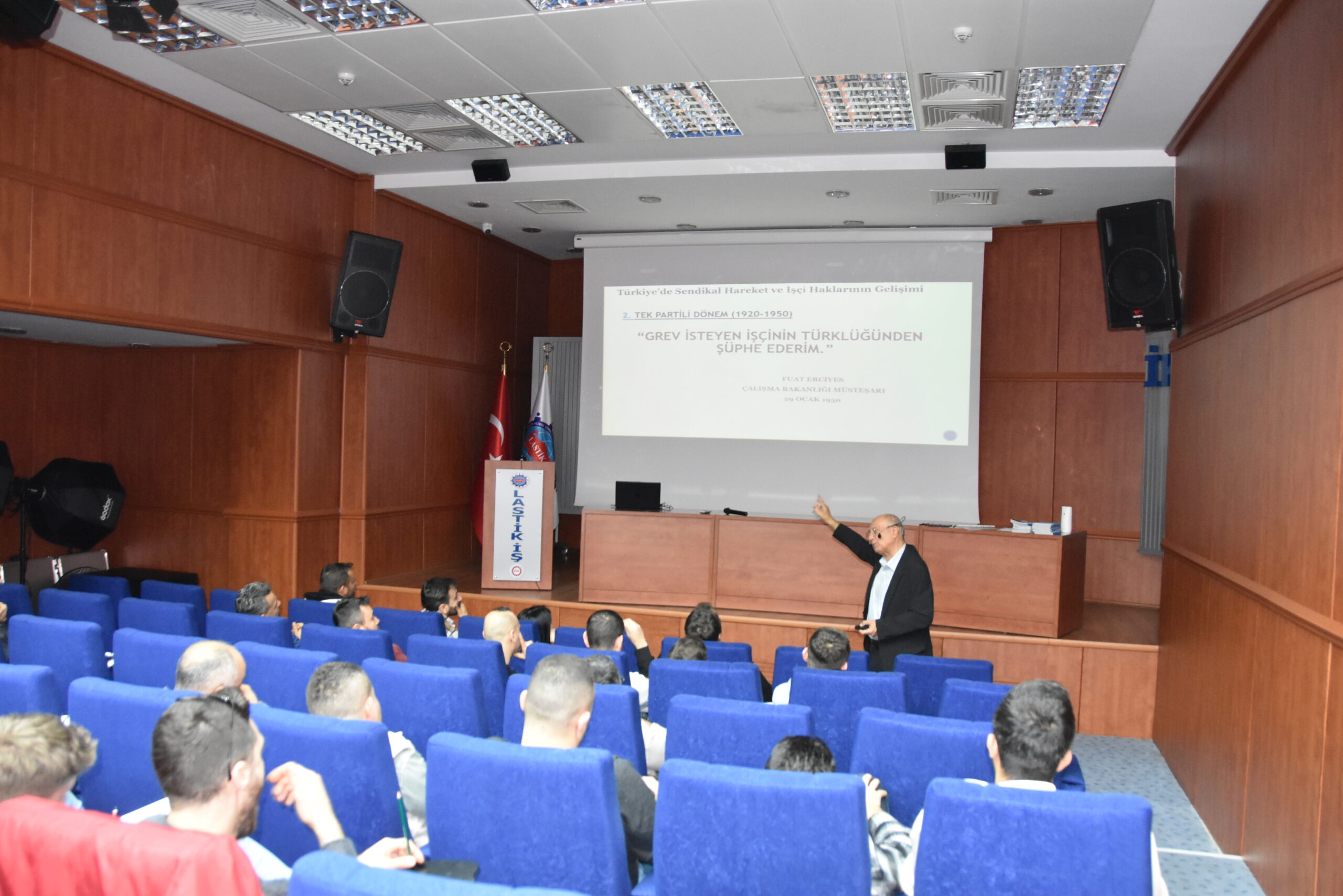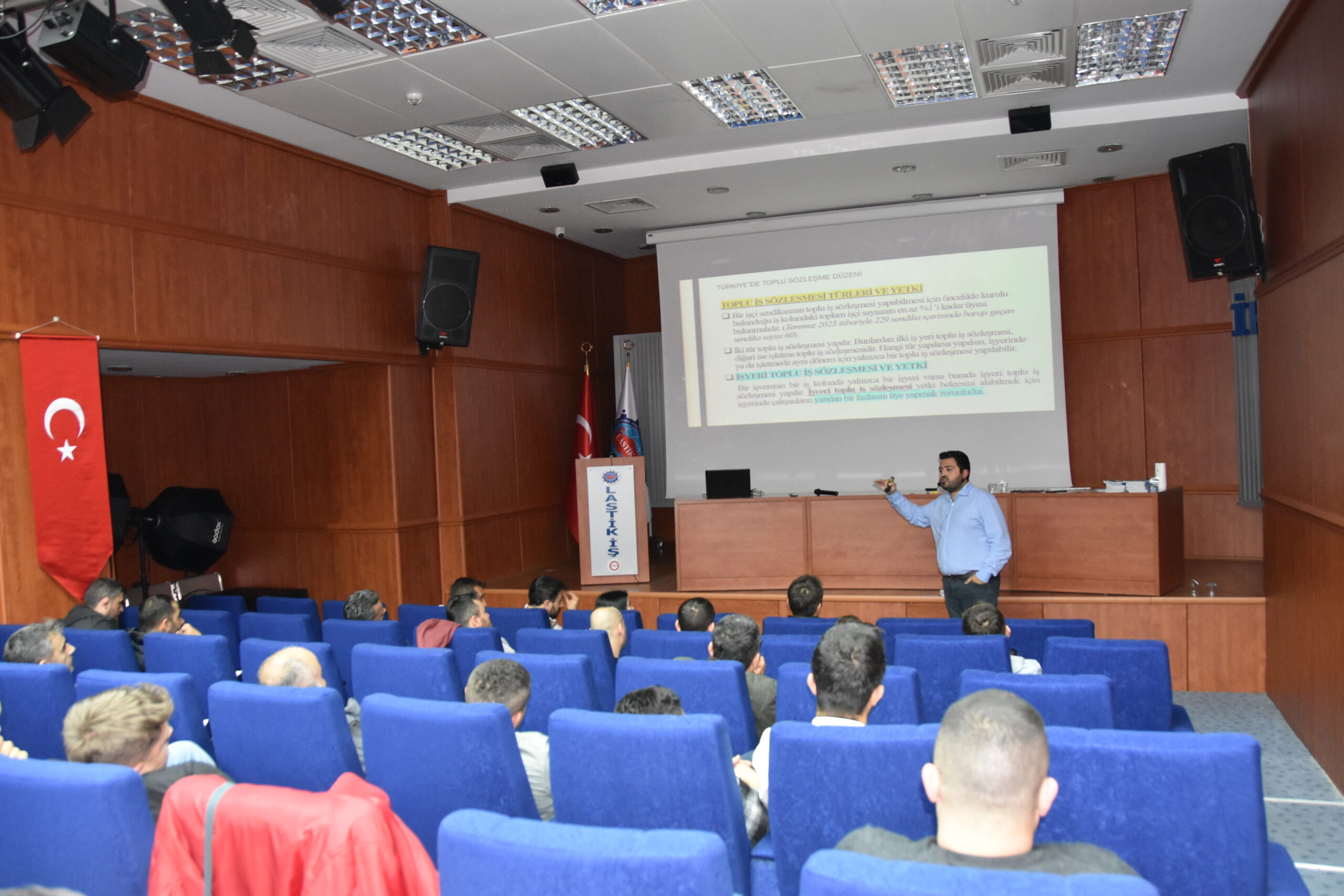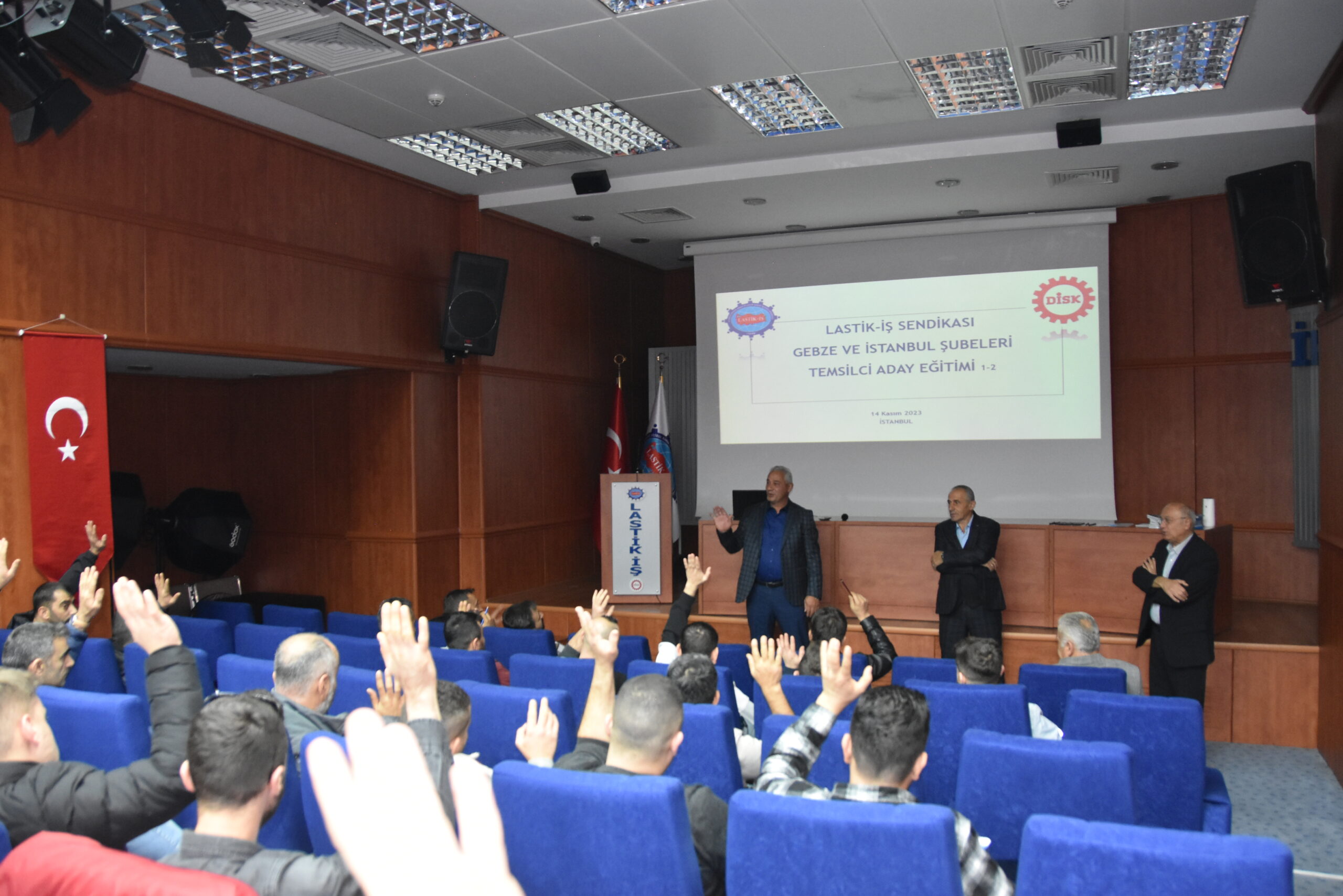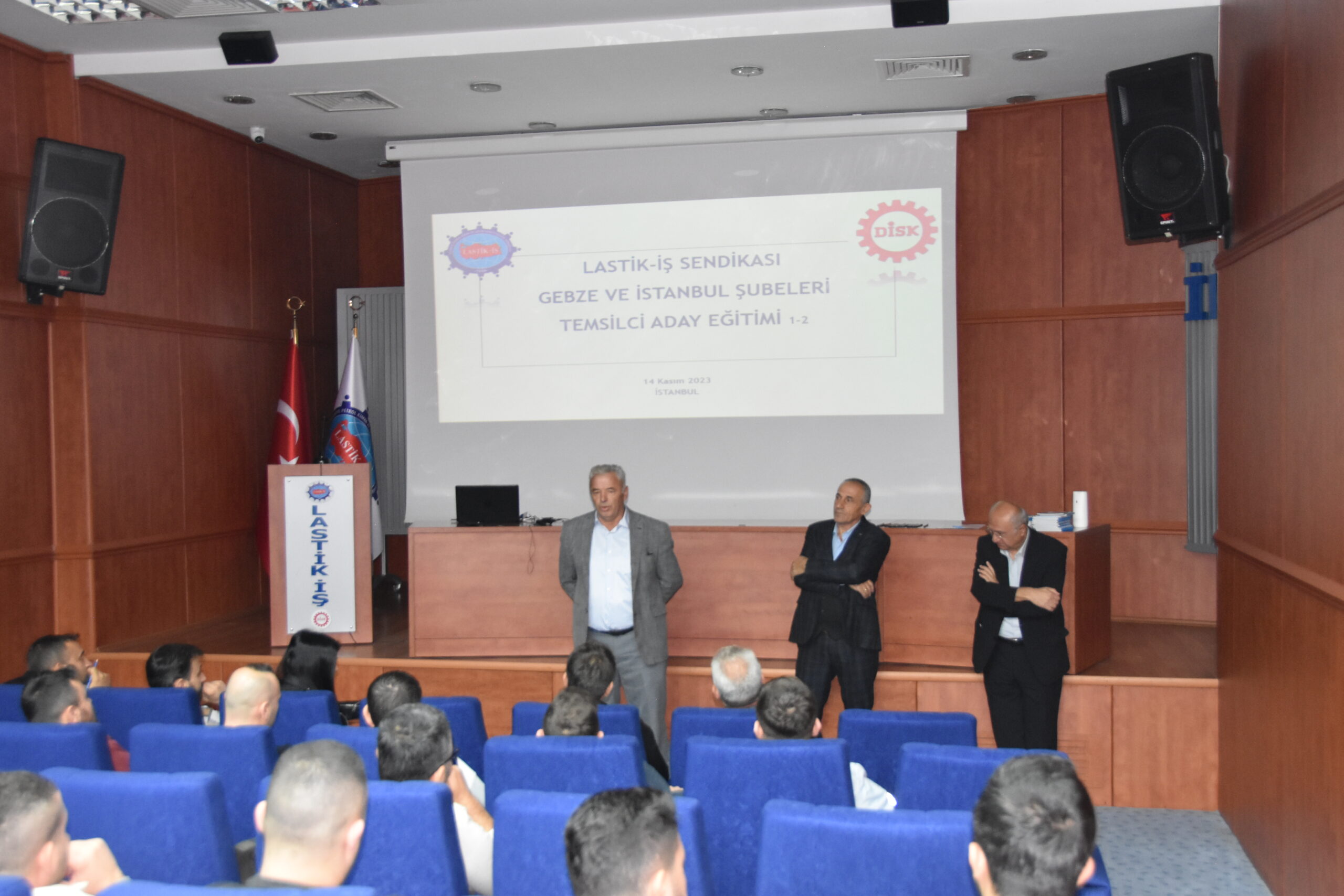 Sendikamızın 2023-2024 yılı eğitim çalışmaları kapsamında 14 Kasım 2023 Salı günü Master Builders Solutions, Colgate, Dow, Setaş , Vibracoustic, işyerlerinde çalışan üyelerimiz ile Temsilci Aday Eğitiminin birinci aşamasını gerçekleştirdik. Lastik-İş Sendikası Genel Merkezinde gerçekleşen eğitime; sendikamızın Genel Başkan Yardımcısı ve Toplu Sözleşme Dairesi Başkanı Ziya Ünal, Hukuk Dairesi Başkanı Ali Öztürk, Eğitim Basın Yayın Dairesi Başkanı Salih Gür, Toplu Sözleşme ve Eğitim Dairesi Müdürü Üzeyir Ataman, Toplu Sözleşme Dairesi Uzmanı Ece Göktürk, sendikamızın avukatı Tolga Demirel, Gebze Şubesi Başkanı Özay Bektaş ve yönetimi, İstanbul Şubesi Başkanı Tolga Toker ve yönetimi, temsilcilerimiz ve işyerlerinden seçimlerde temsilci adayı olmayı düşünen üyelerimiz katıldı. Eğitim ‘’Lastik-İş Geçmişten Geleceğe Onurlu Adımlar’’ belgeselinin gösterimi ile başladı.