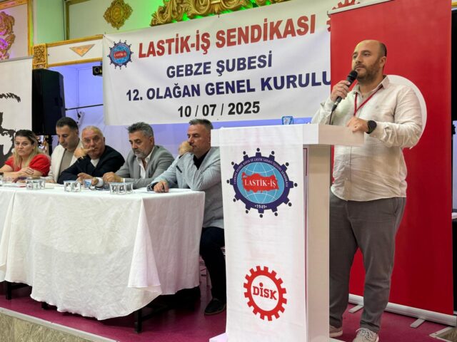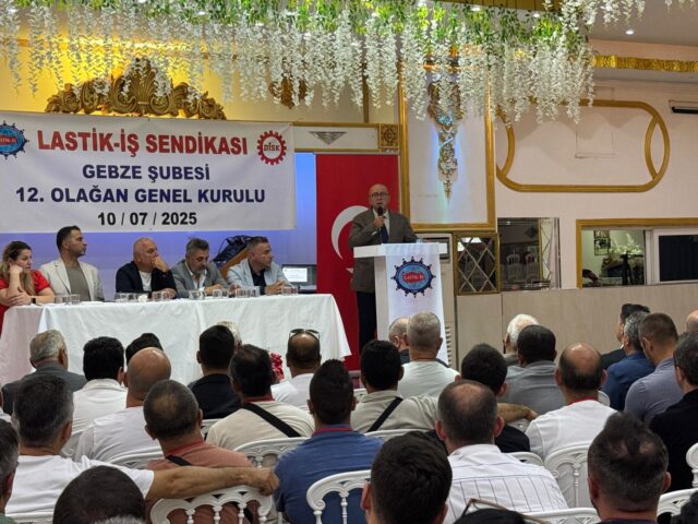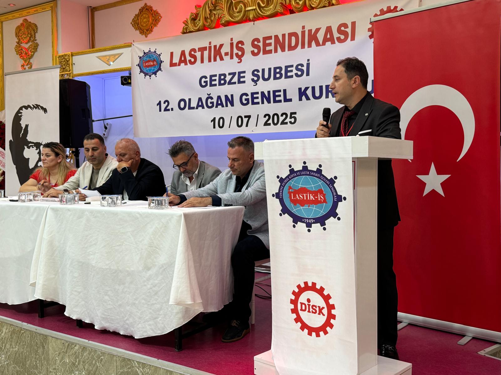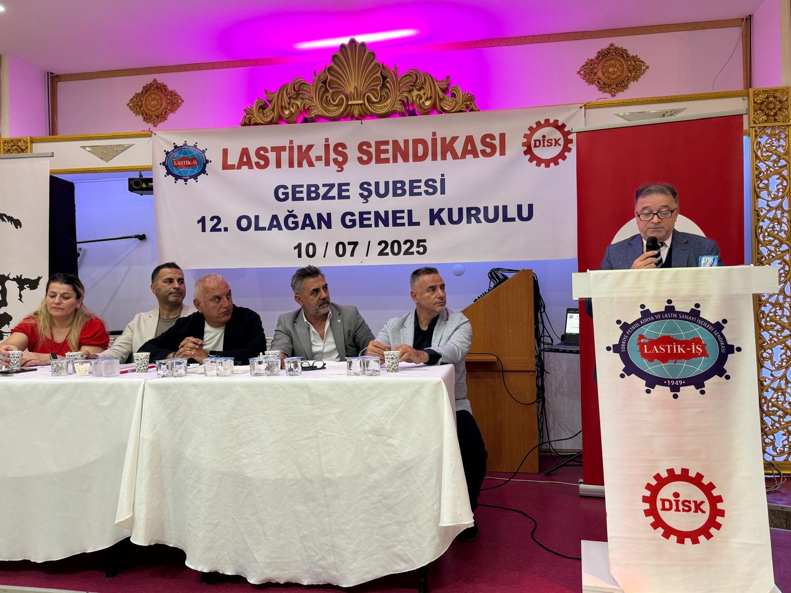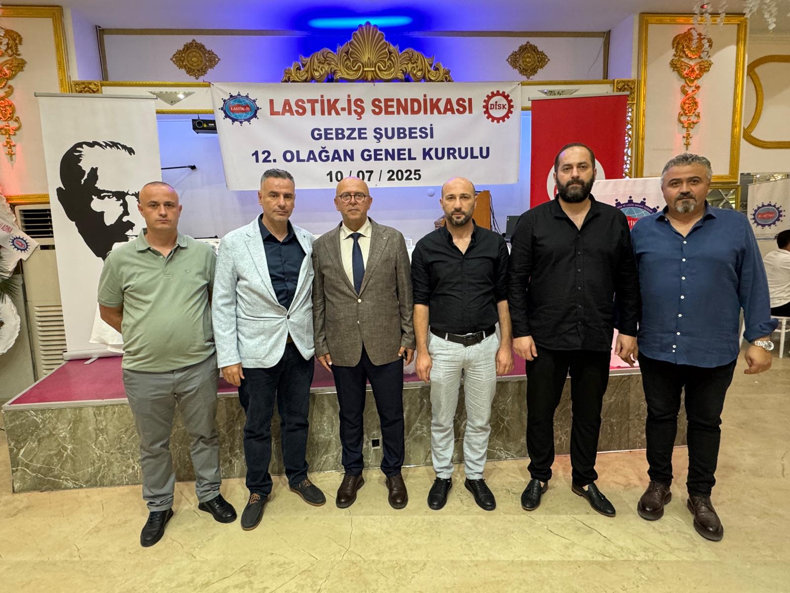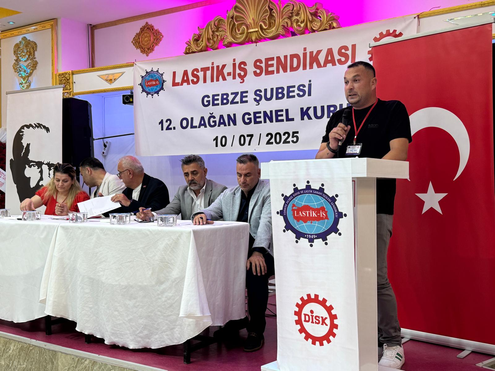 Lastik-İş Sendikası Gebze Şubesi’nin 12. Olağan Genel Kurulu 10 Temmuz 2025 tarihinde gerçekleştirildi. Genel Kurula Sendikamızın Genel Başkanı Alaaddin Sarı, Genel Sekreteri İhsan Malkoç, Genel Başkan Yardımcısı ve Toplu Sözleşme Dairesi Başkanı Ziya Ünal, Eğitim Basın Yayın Dairesi Başkanı Salih Gür, Hukuk Dairesi Başkanı Ali Öztürk, Mali İşler Dairesi Başkanı Nejdet Ulusoy, Örgütlenme Dairesi Başkanı Alperen Şakacı, Toplu Sözleşme ve Eğitim Dairesi Müdürü Üzeyir Ataman, Lastik-İş Sendikası Genel Merkez uzmanları, şube yöneticileri, işyeri temsilcileri, Gebze şubesinde bağlı işyerlerinden delegeler ve üyeler katıldı.