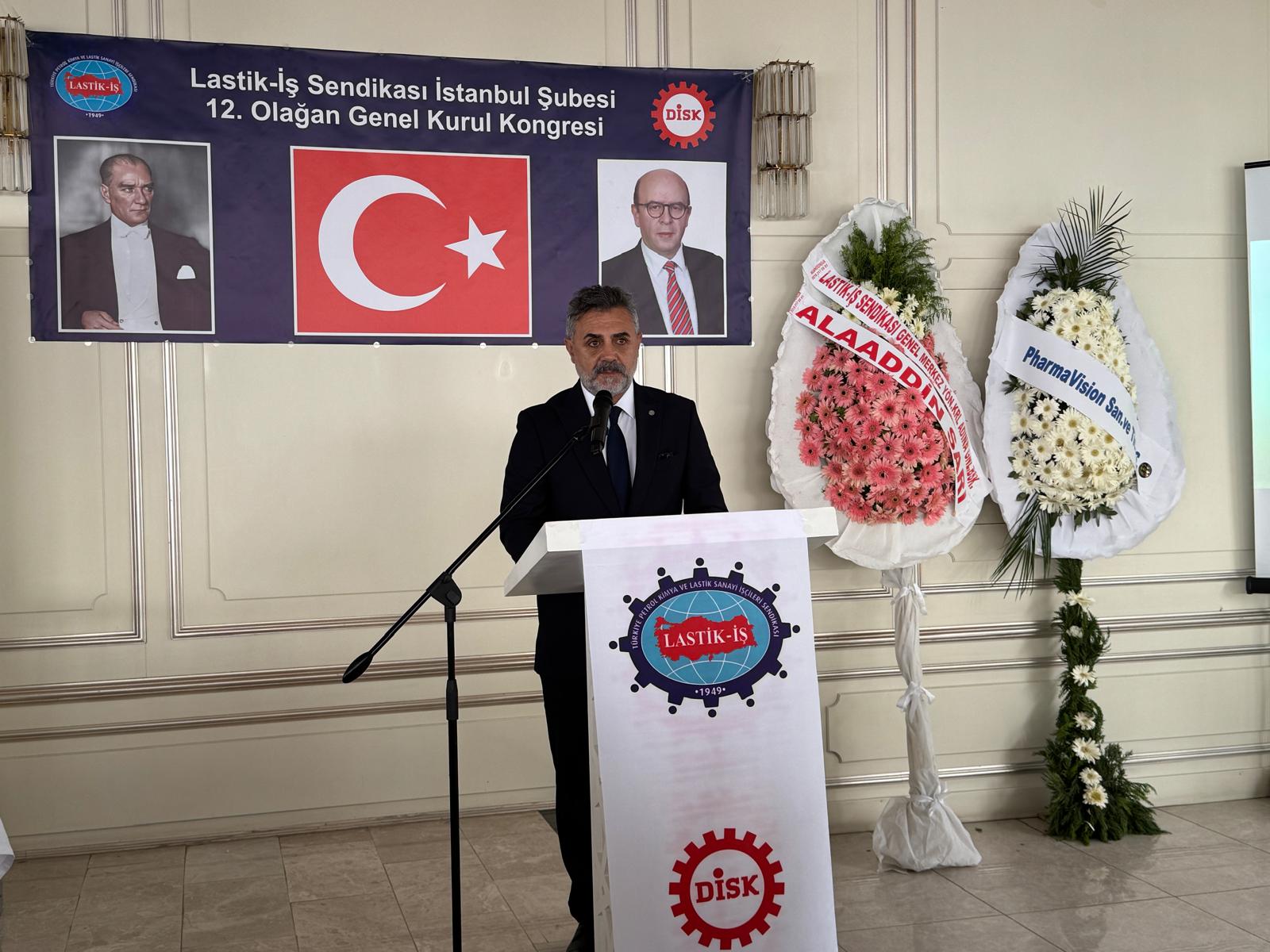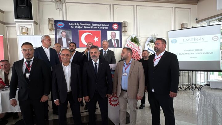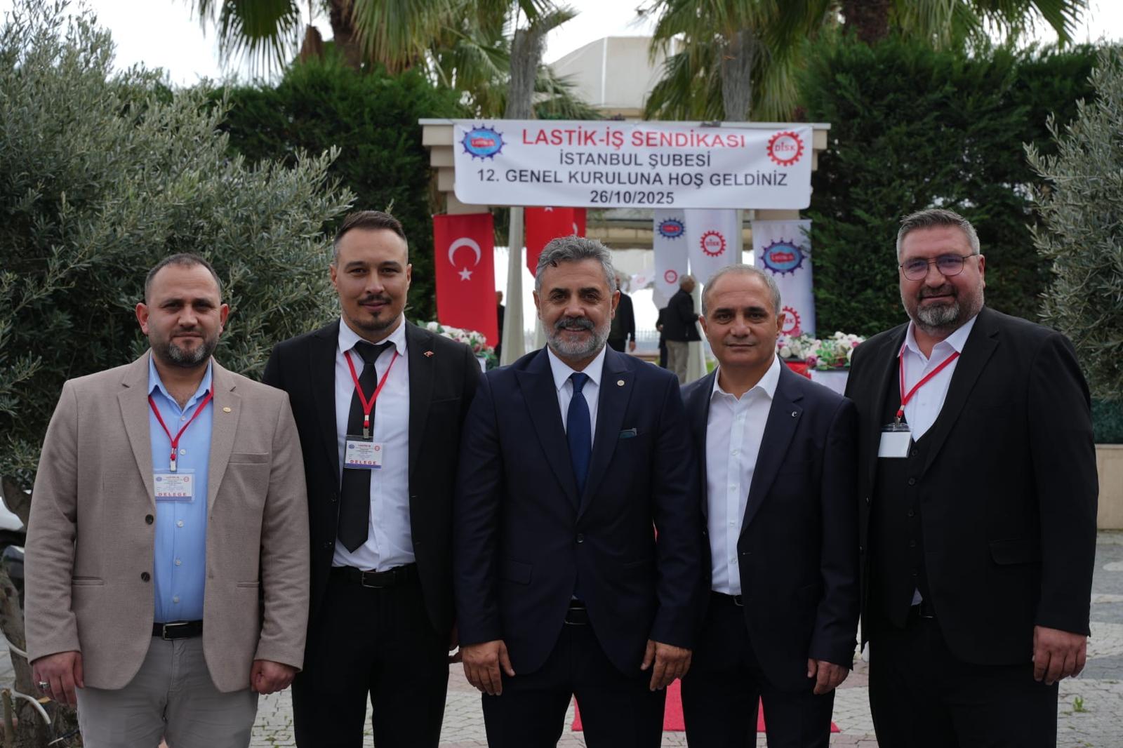Lastik-İş Sendikası İstanbul Şubesi’nin 12. Olağan Genel Kurulu 26 Ekim 2025 tarihinde gerçekleştirildi. Genel Kurula Sendikamızın Genel Başkanı Alaaddin Sarı, Genel Sekreteri İhsan Malkoç, Genel Başkan Yardımcısı ve Toplu Sözleşme Dairesi Başkanı Ziya Ünal, Eğitim Basın Yayın Dairesi Başkanı Salih Gür, Hukuk Dairesi Başkanı Ali Öztürk, Mali İşler Dairesi Başkanı Nejdet Ulusoy, Örgütlenme Dairesi Başkanı Alperen Şakacı, Toplu Sözleşme ve Eğitim Dairesi Müdürü Üzeyir Ataman, Lastik-İş Sendikası Genel Merkez uzmanları, şube yöneticileri, işyeri temsilcileri, İstanbul şubesine bağlı işyerlerinden delegeler ve üyeler katıldı.