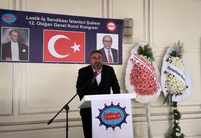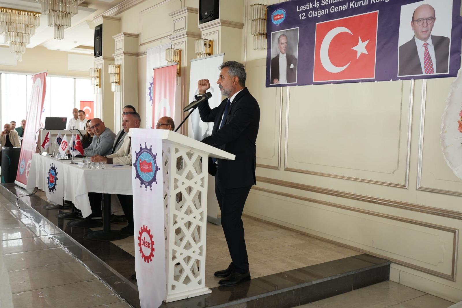Genel Başkanımız ayrıca, “Biz Lastik-İş olarak tüm dünya üzerinde var olan haksızlıklara, eşitsizliklere ve çalışanlara karşı uygulanan baskılara boyun eğmeden mücadelemizi sürdürüyoruz. Birçok ülkede işçilerin yaşadığı baskı ve ekonomik zorlukları, işsizliği ve açlığı görüyoruz. Kendi ülkemizdeki haklarımızı koruyabilmek ve uluslararası alanda haklılığımızı sağlayabilmek için dünyanın diğer ülkelerindeki işçi kardeşlerimizin yaşadığı zorluklarda onlara destek olmak zorundayız. Lastik-İş, yoluna, birlik ve bütünlüğünü daha da geliştirerek devam edecektir. Sendikamız yeni üyelerle buluşacak, yeni işyerleri örgütleyecektir. Üyelerimizin ailelerini de içine alan sendikal programlar uygulamaya devam edecektir. Kazanılmış haklarımızı kıskançlıkla koruyacaktır. Satın alma gücümüzü iyileştirecek toplu sözleşme politikaları geliştirecektir. İş güvencemize sahip çıkacak ve üyelerimizin işlerinin sürekliliğini hiçbir şekilde vazgeçilmeyecek temel bir hedef olarak koruyacaktır. Lastik-İş, bir sendika nasıl olması gerekiyorsa, öyle bir sendikadır. Üyesinden temsilcisine, delegesinden şube ve merkez yönetimlerine kadar tüm varlığıyla, üyelerinin güvencesi, işçilerin demokratik hak ve özgürlükleri için sürdürülen mücadelenin öncü gücüdür.” şeklinde konuştu.