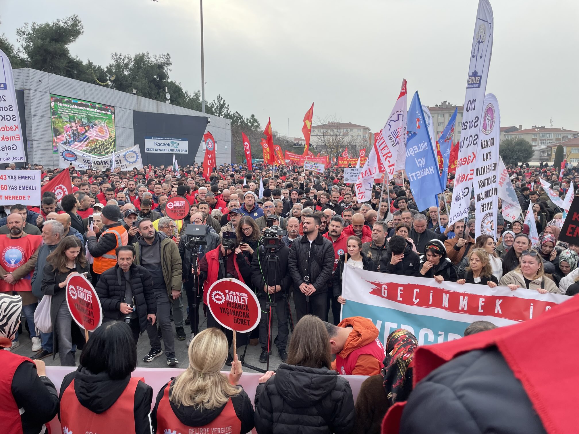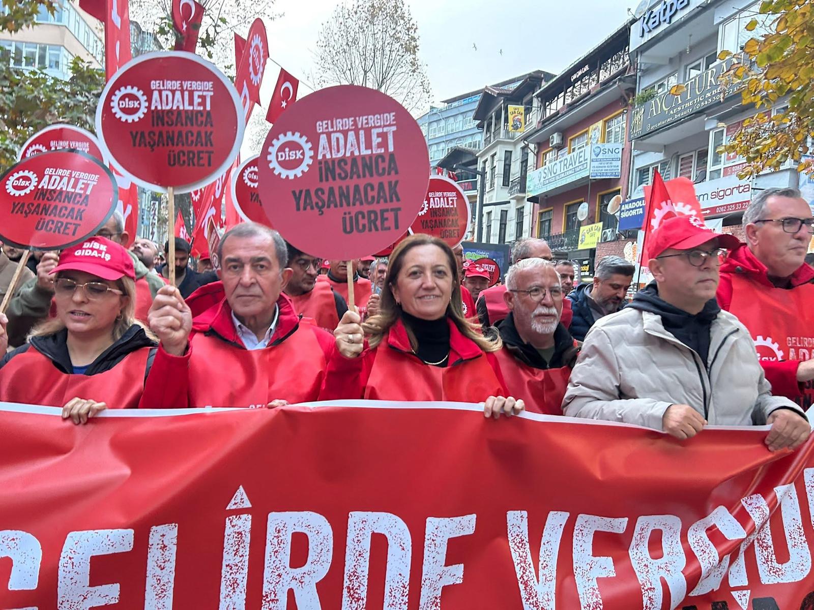 DİSK Genel Başkanı Arzu Çerkezoğlu burada yaptığı açıklamada “Gelirde adalet için yürüyoruz, ekmeğimize sahip çıkmak için yürüyoruz. Her adımda bu mücadeleyi tüm sınıf kardeşlerimizle büyütüyoruz.” şeklinde konuştu.