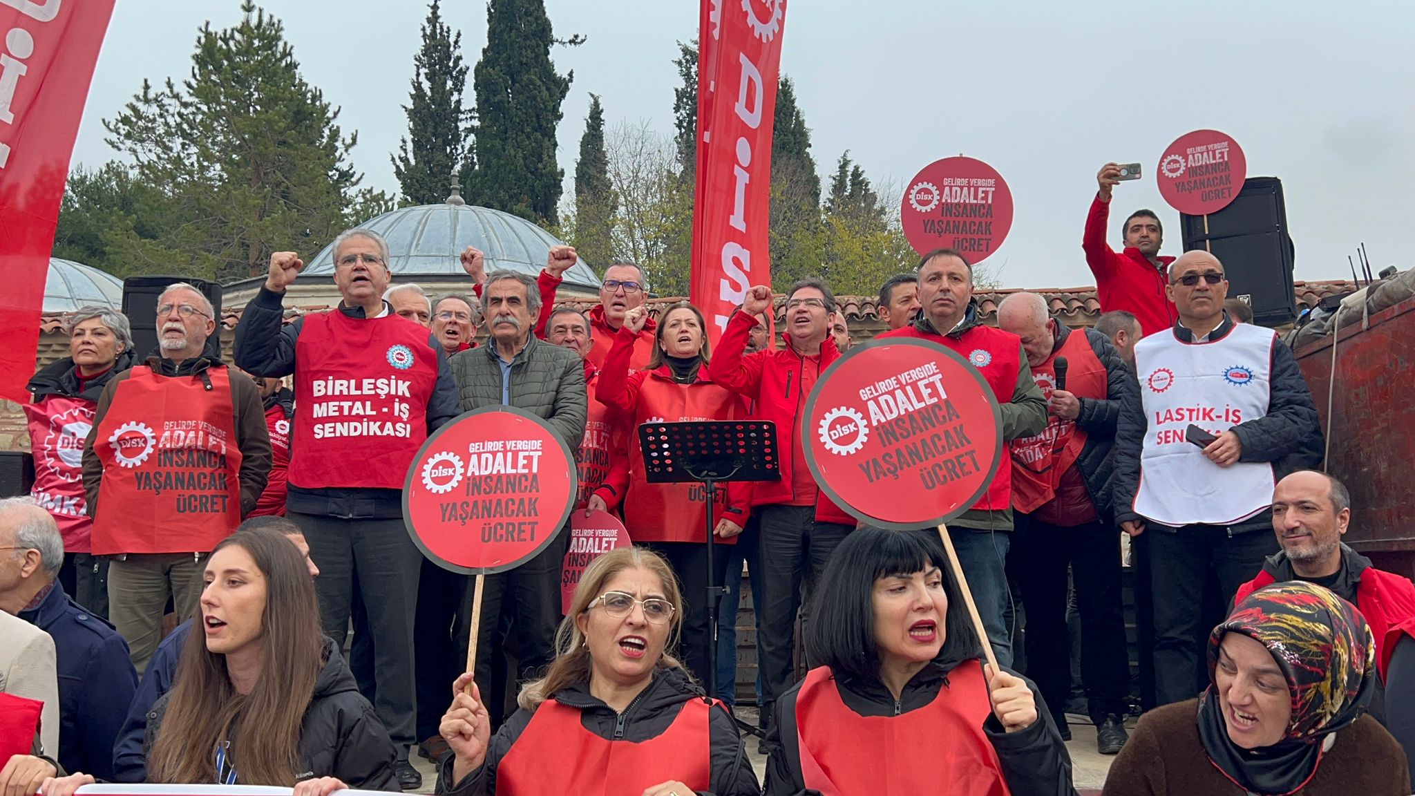 DİSK Genel Başkan Yardımcısı ve Sendikamızın Genel Başkanı Alaaddin Sarı yaptığı konuşmada, “Haklarımız için, vergide ve gelirde adalet için, emeklilerin maaşlarının daha iyi düzeyde olması için yürüyoruz. Lastik fabrikalarında TÜİK’in bizlere dayatmış olduğu enflasyon rakamlarına takılmadan yürüyoruz. Geleceğimiz için, çocuklarımızın daha iyi bir Türkiye’de yaşaması için yürüyoruz. Kazanan DİSK olacak, emekçilerin geleceği olacak!” dedi.